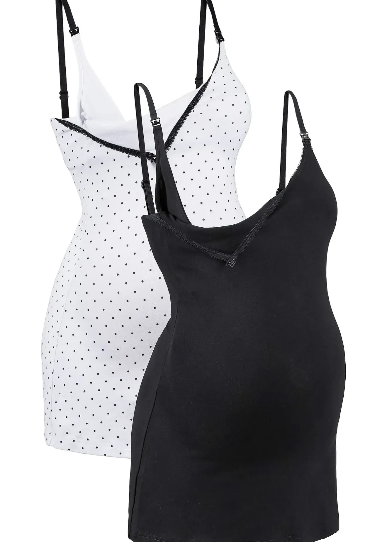 Lot pratique de 2 débardeurs de Nice Size pour la grossesse et l’allaitement, matière douce et confortable.