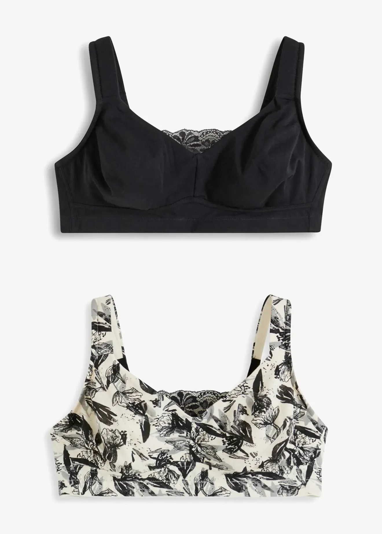 bonprix Lot de 2 soutiens-gorge coton sans armatures|Femme Lingerie Coton|Soutiens-Gorge