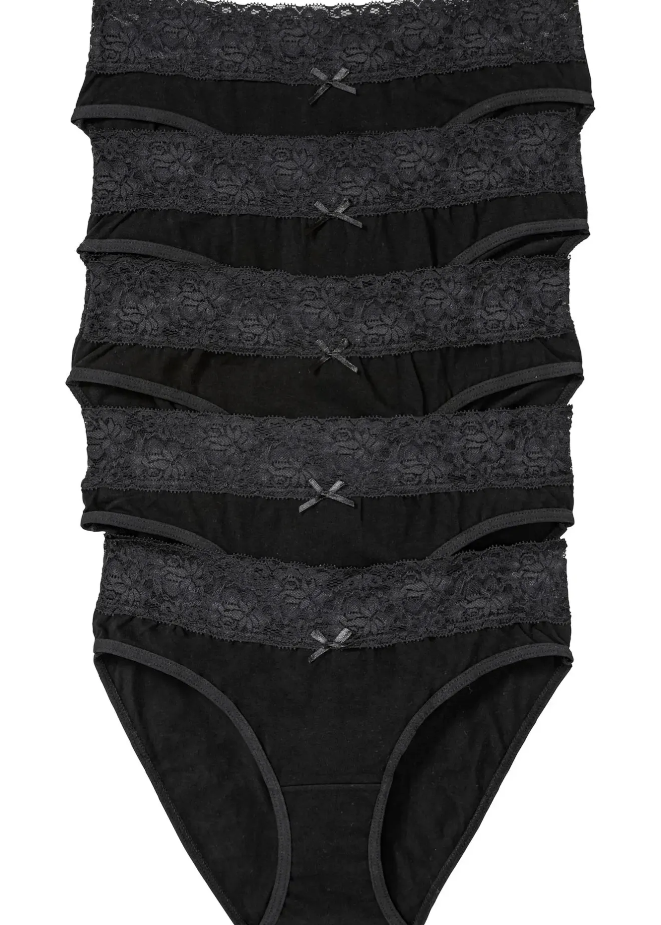 Cinq slips en coton avec taille en dentelle