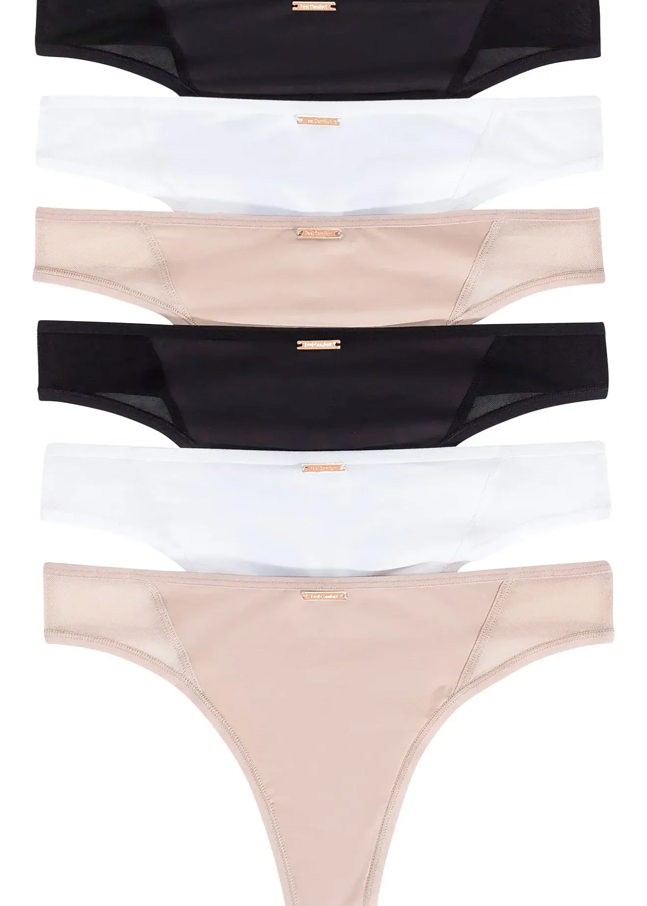 Lot de 6 strings Feel Comfort de coloris uni avec empiècement mesh. La matière microfibre douce épouse parfaitement la silhouette et assure une agréable sensation de confort.