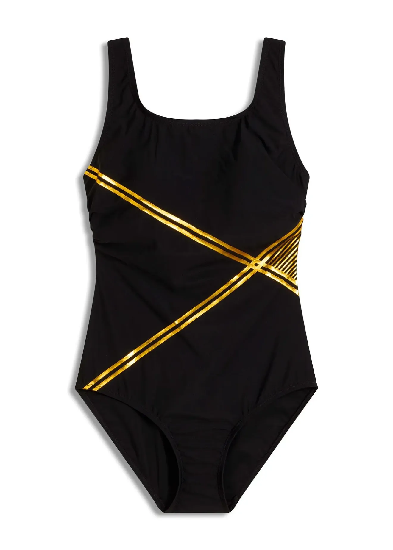 Maillot 1 pièce sculptant et élégant avec des lignes dorées