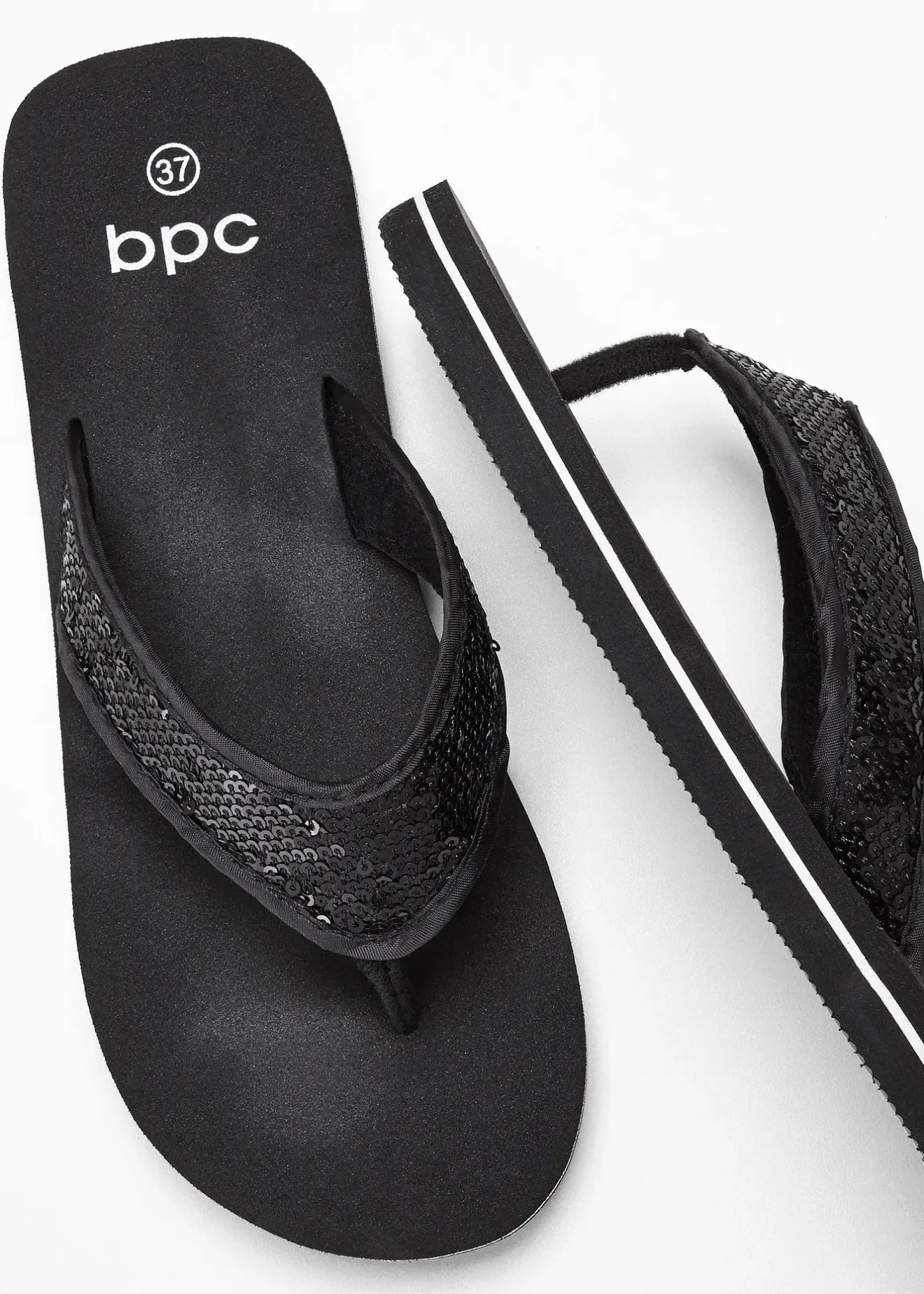 Parfaites pour l’été, ces mules bpc sont décorées d’une bride à sequins et d’une bande blanche sur le contour de la semelle. Polyvalentes et confortables, ces tongs se portent pour aller à la plage, à la piscine ou tout simplement pour se balader. Ouvertes, elles laissent respirer les pieds et sont faciles à enfiler. Des indispensables pour la période estivale.