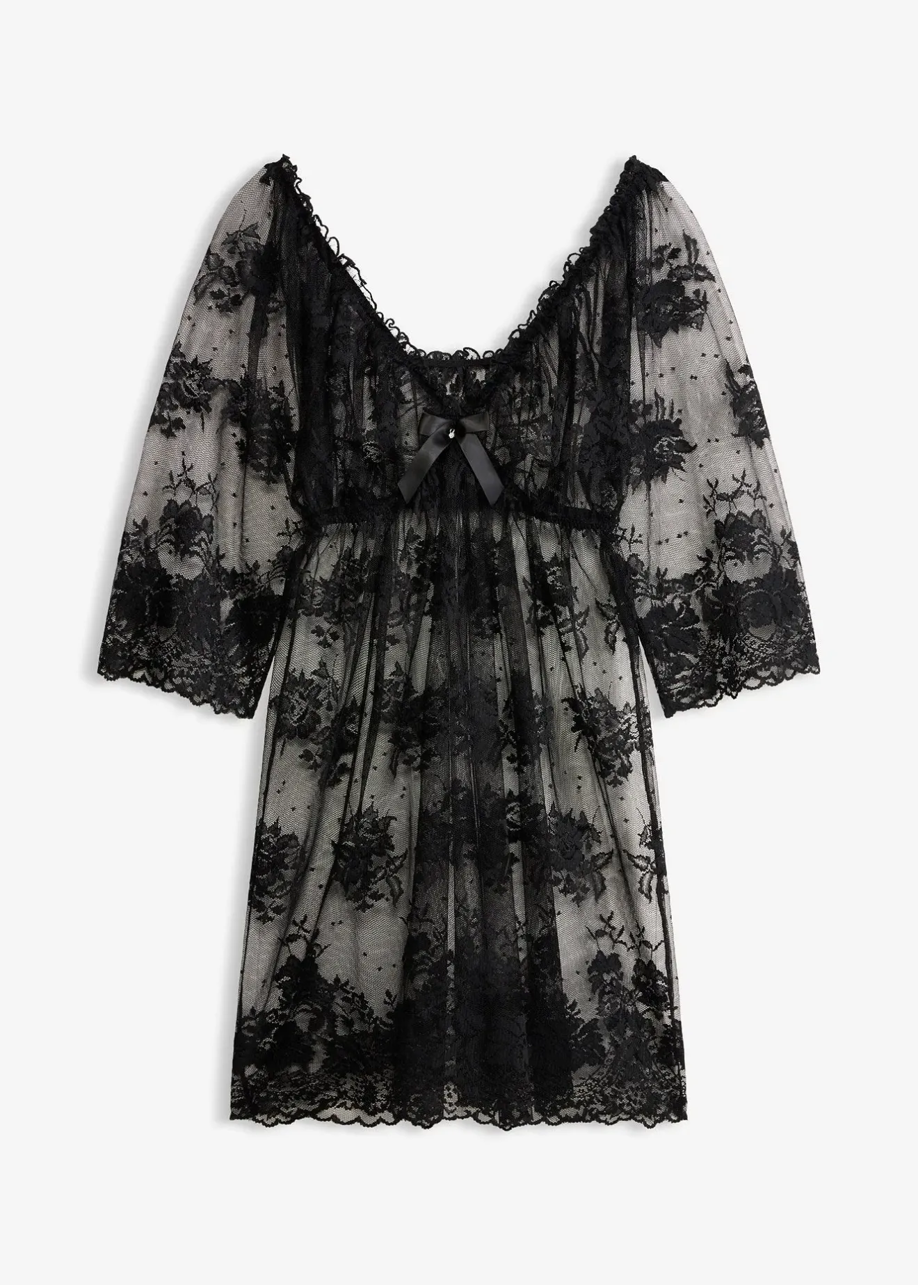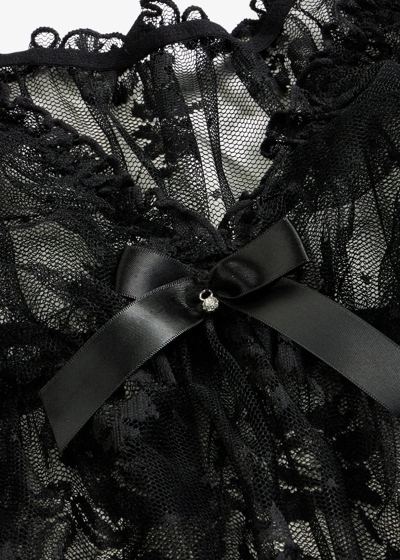 Tout en élégance ! Cette nuisette flatte vos courbes féminines avec légèreté et sa transparence raffinée émoustille le désir. L’encolure plongeante en V souligne délicatement le décolleté et un petit nœud fantaisie au centre complète la tenue à merveille. Votre partenaire sera sous le charme de ce look romantique à souhait. Cette nuisette est également proposée en grandes tailles.