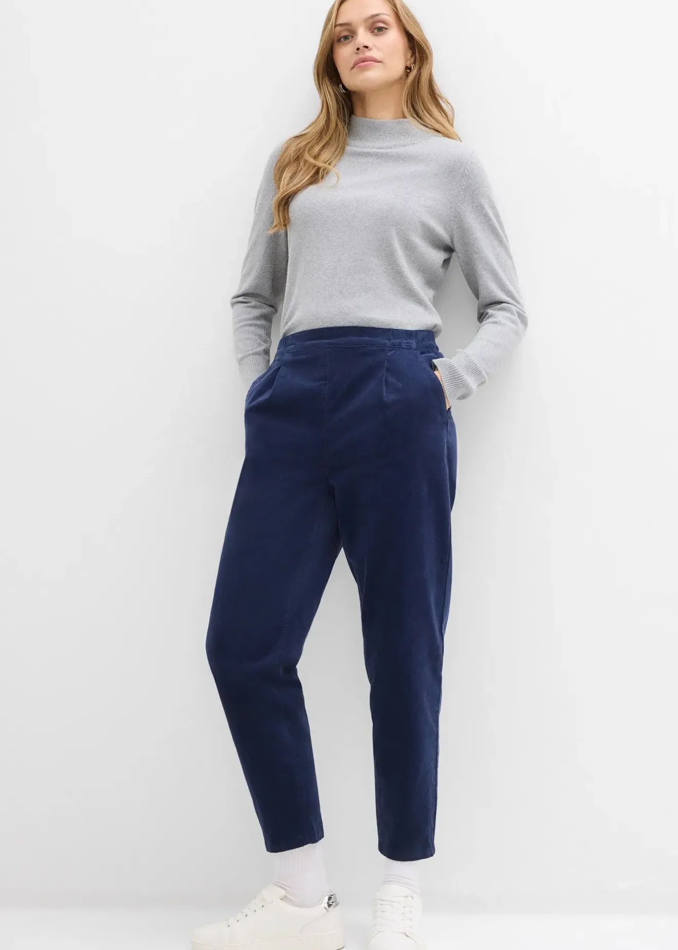 Pantalon raccourci en velours côtelé avec taille extensible
