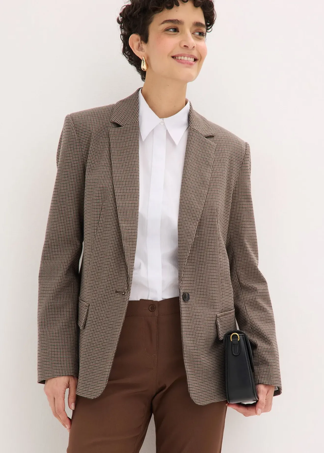 Jambes évasées mode, passants de ceinture et poches au dos, légèrement taille basse, long. entrejambe env. 82,5 cm.