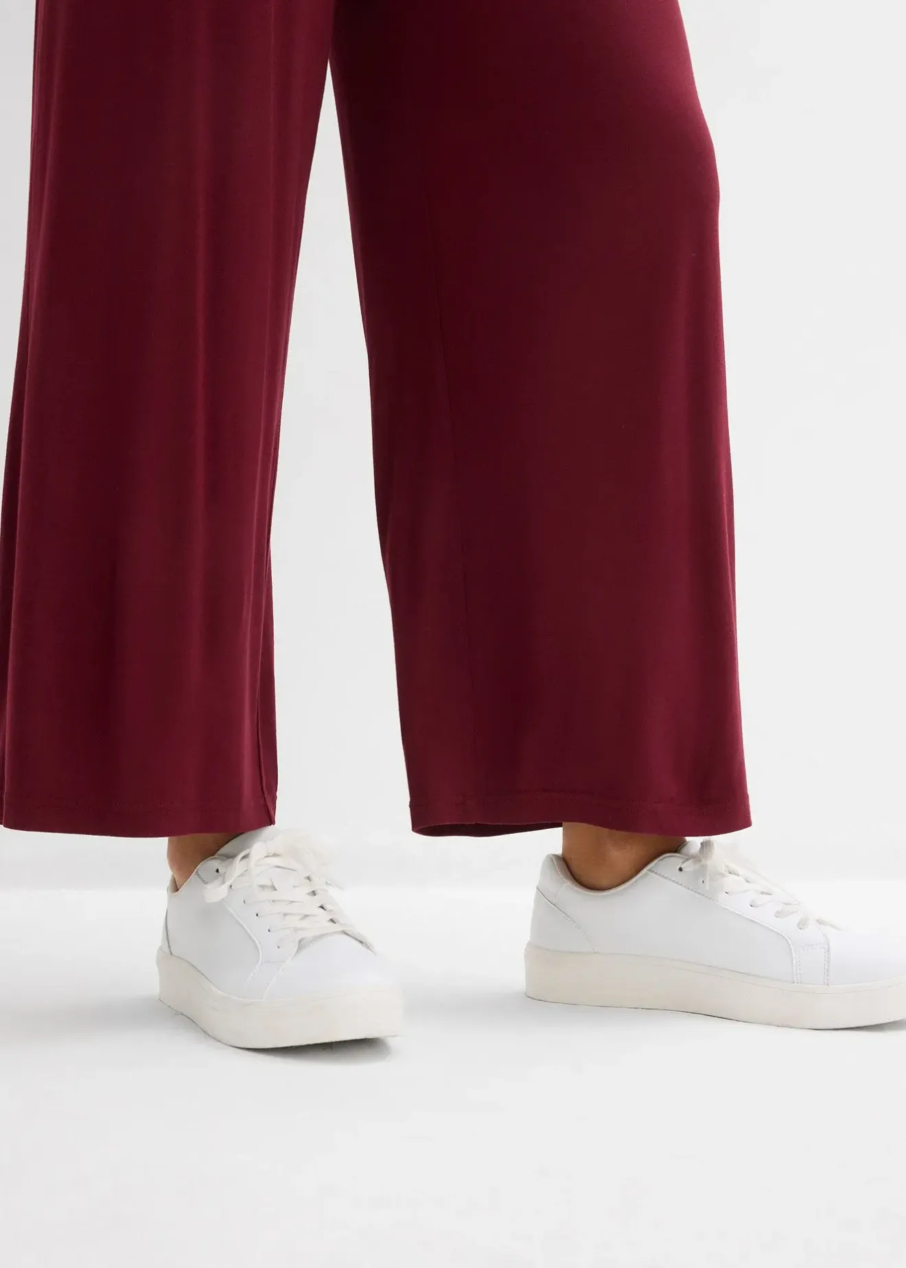 Pantalon fluide et décontracté en jersey viscose, taille élastiquée, longueur 7/8