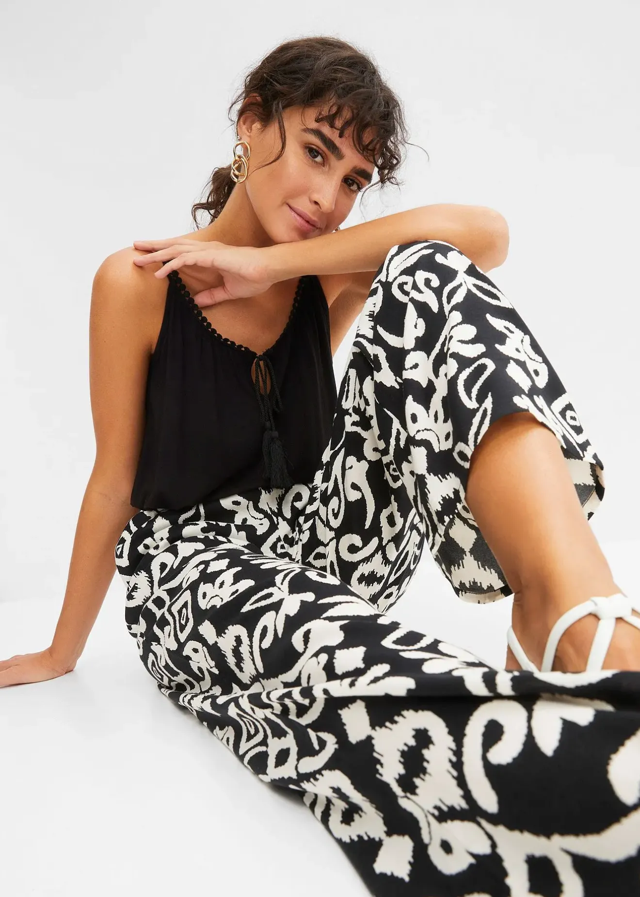 Pantalon moderne en viscose fluide avec un imprimé mode et une taille élastiquée