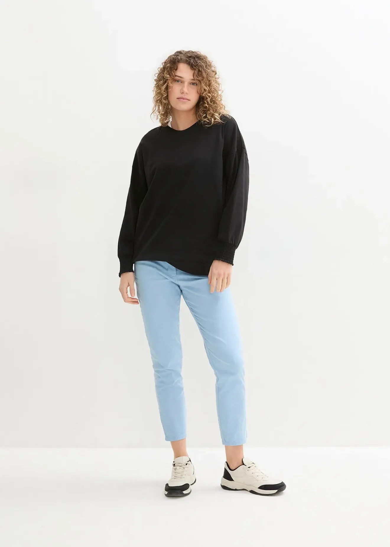 Pantalon twill confortable avec jambes raccourcies et délavage used, chaque pièce est unique