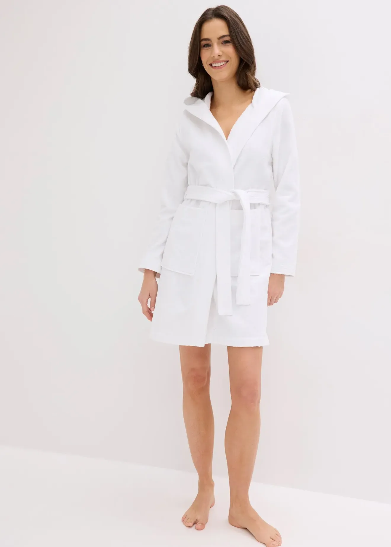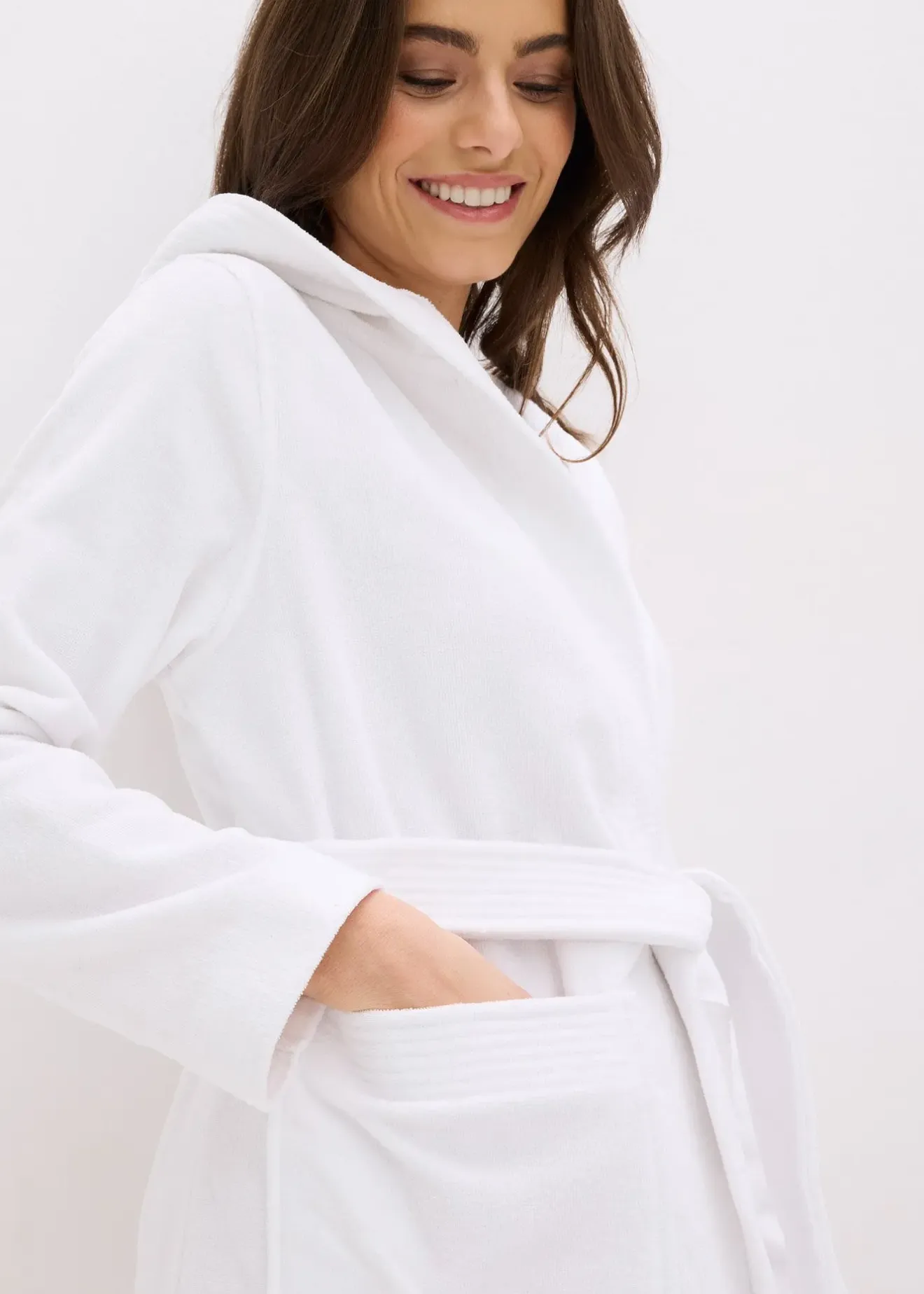 Peignoir à capuche, ceinture à nouer et poches en éponge