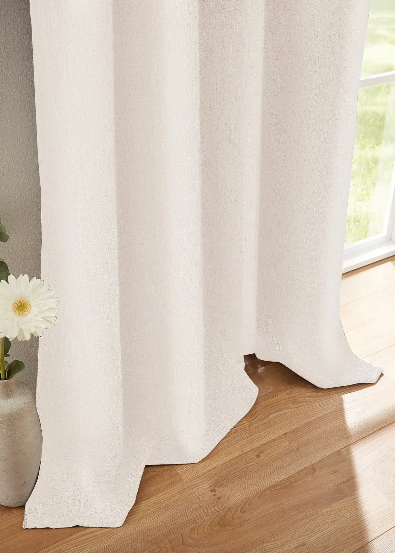 Ce rideau panneau est à la fois sobre et accrocheur. Son tissu opaque et lourd (320g/m²) permet de repousser la chaleur et le froid. Son mélange de fibres crée un bel aspect chiné.