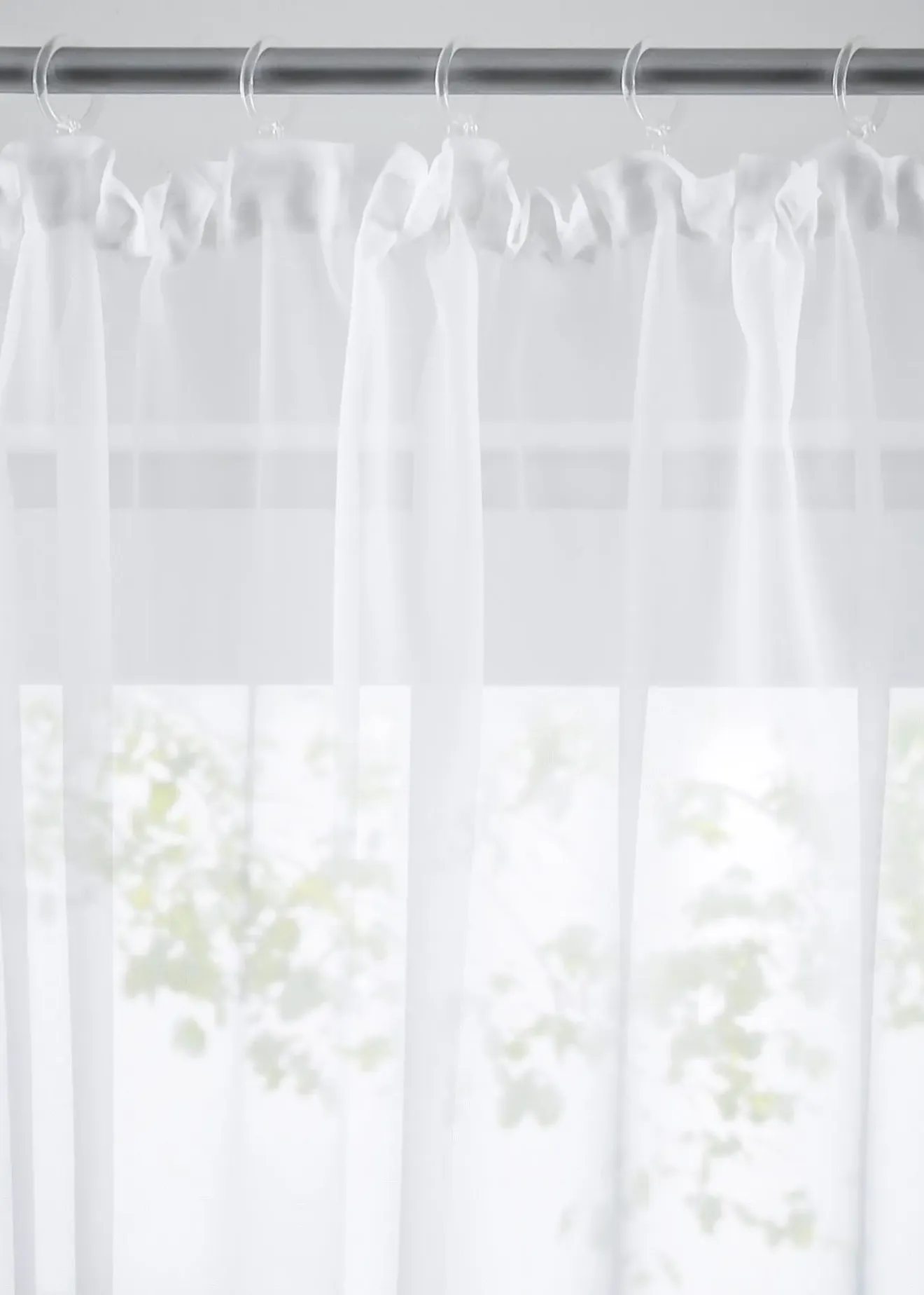 Style épuré. Décoration de fenêtre en voile fin avec base lestée pour un tombé magnifique. Nous conseillons de commander 3 fois la largeur de votre fenêtre.