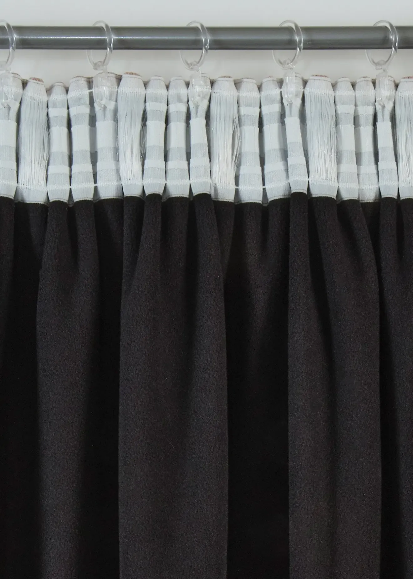 Ce rideau décoratif sert d’isolant phonique et thermique grâce à sa finition spéciale. Le verso est en polaire noire de haute qualité. Il est donc parfait devant les portes d’entrée ou les fenêtres exposées aux courants d’air.