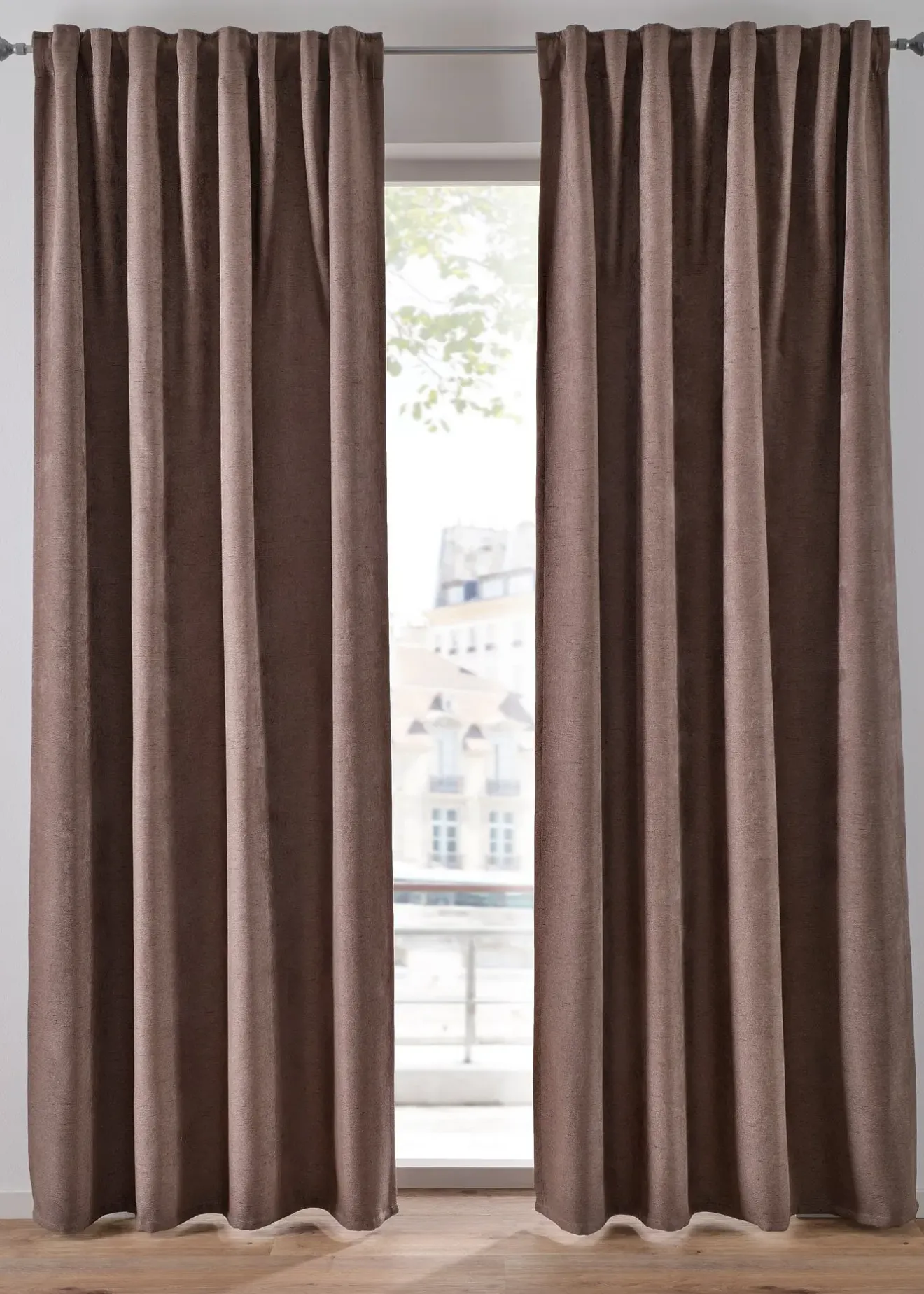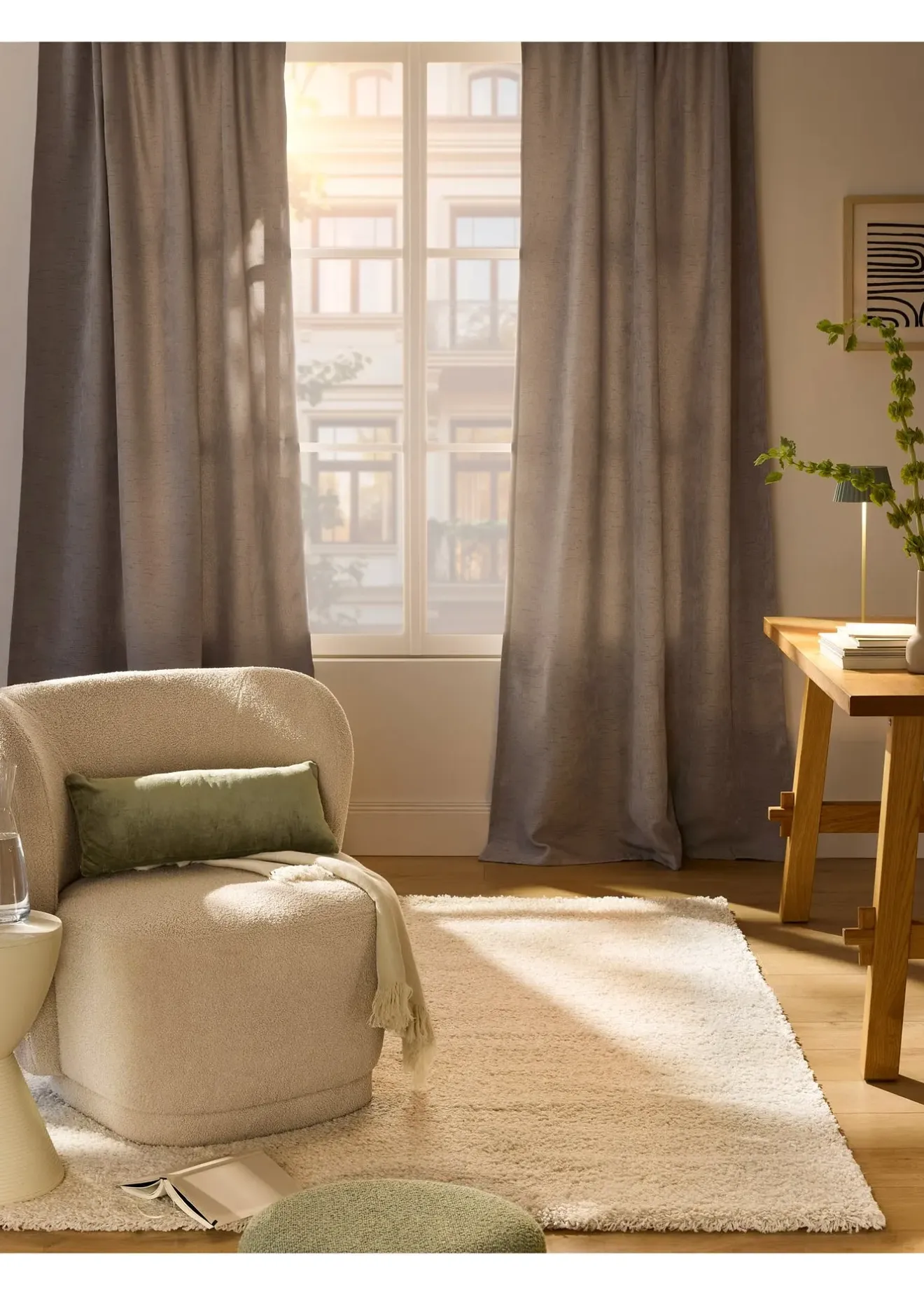 Lot pratique de 2 rideaux occultants, unis et légèrement texturés pour une décoration parfaite de votre fenêtre tout en obscurcissant la pièce au besoin. Style épuré qui s’intègre dans de nombreux intérieurs. Effet insonorisant et isolant permettant de faire des économies d’énergie car ils protègent des courants d’air froid.