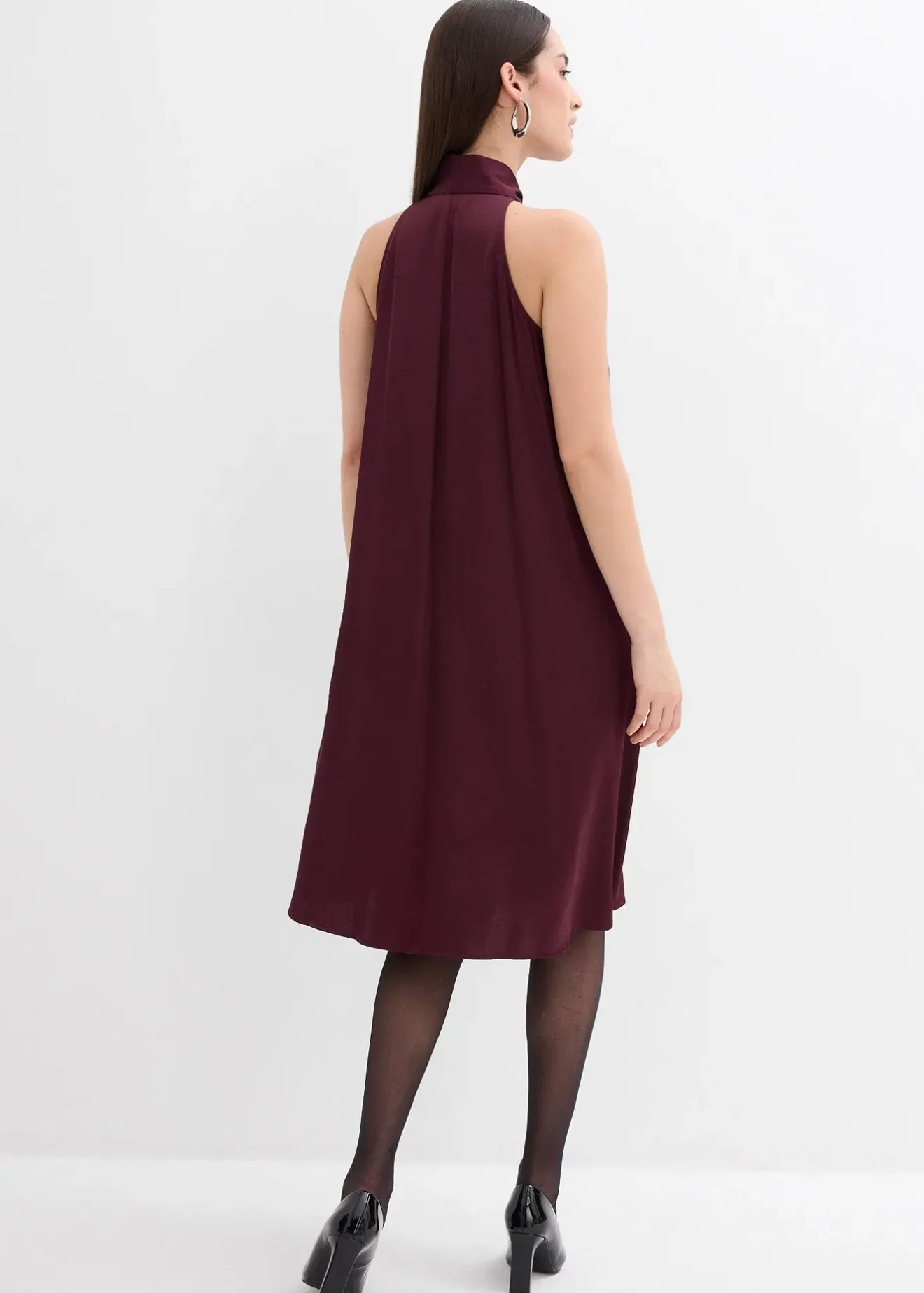 Robe dos-nu, courte et évasée, en satin fluide avec détail écharpe