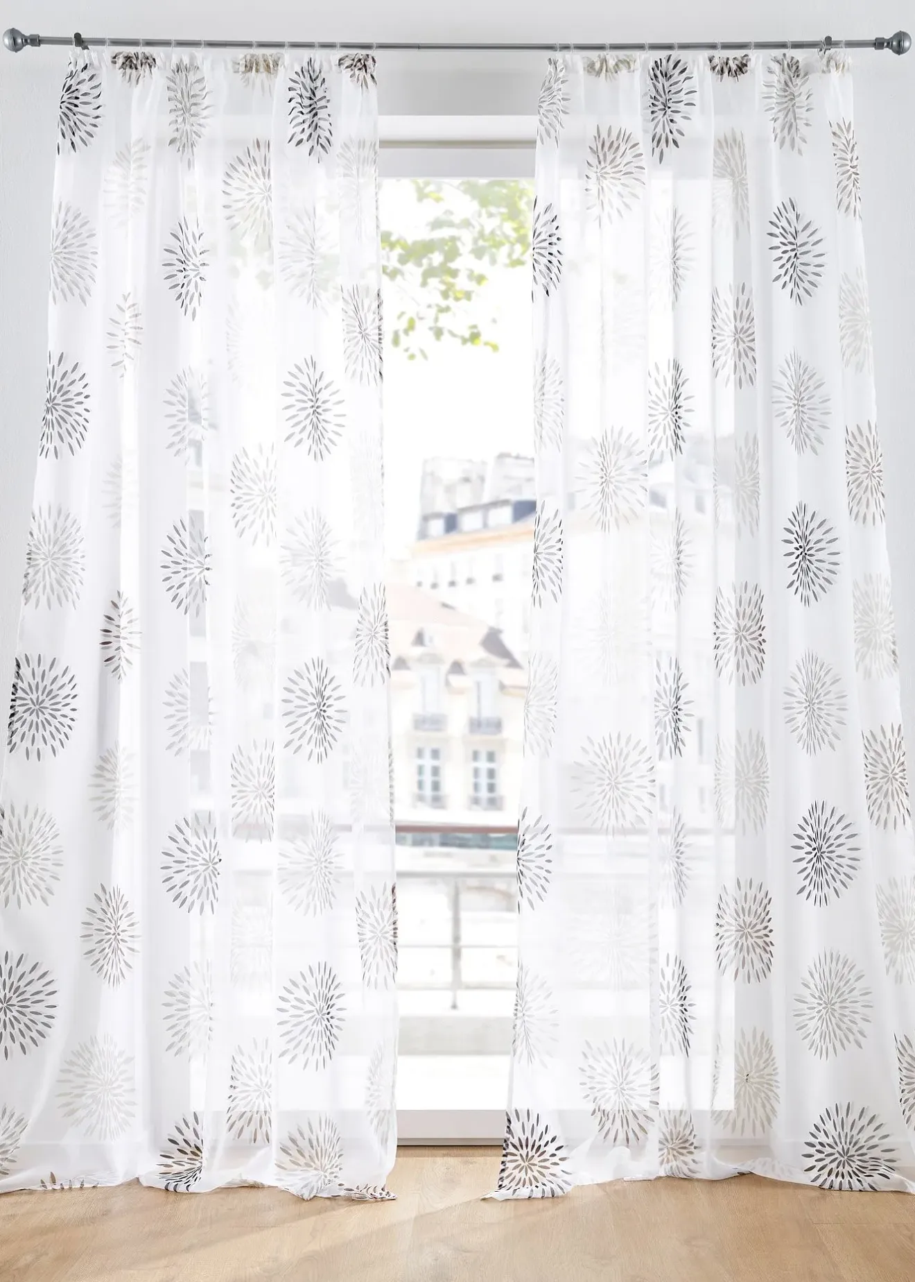 Voilage léger, tranparent et aérien avec un bel imprimé cercles moderne et accrocheur qui vient souligner une déco contemporaine.