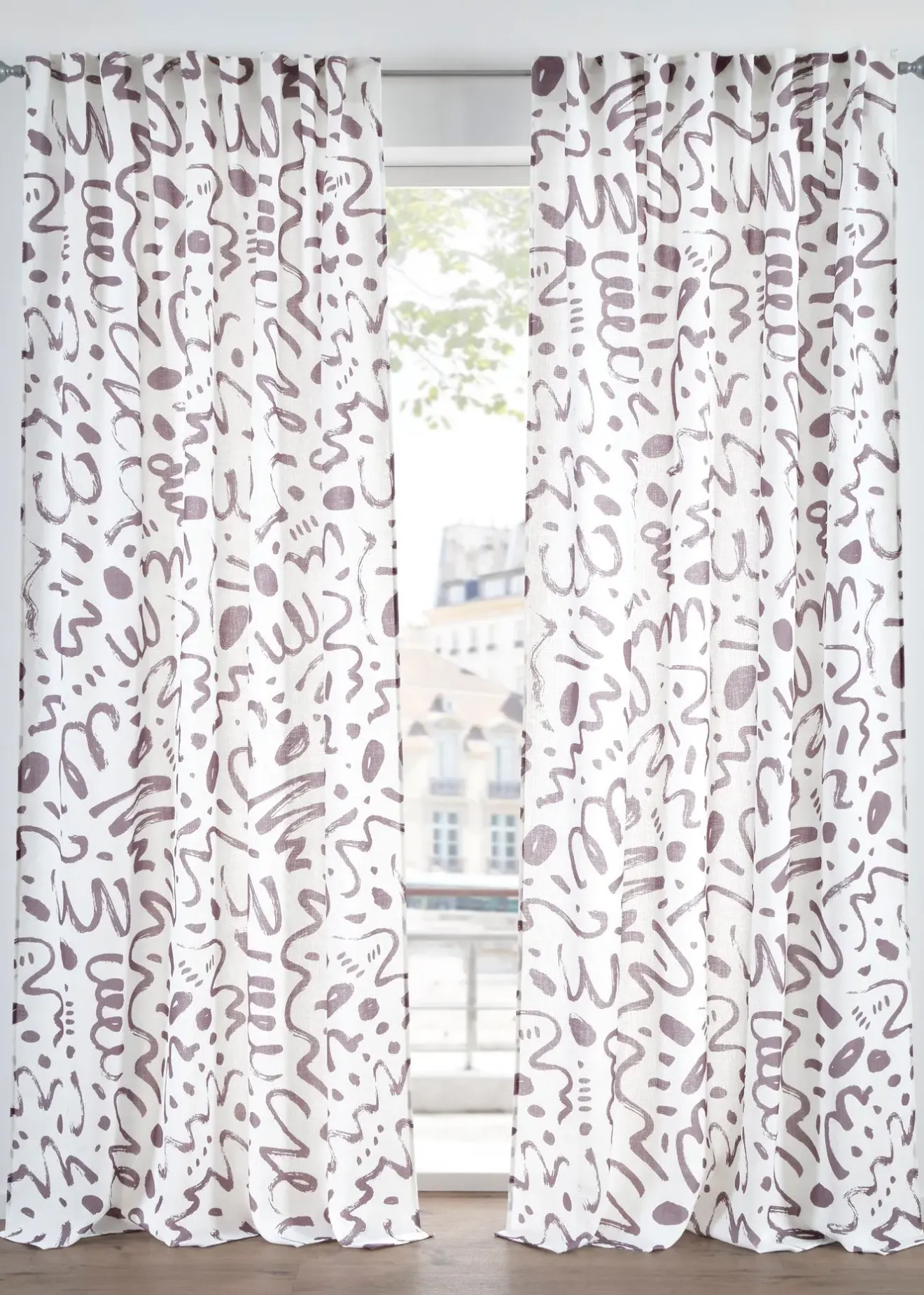 Rideau à motif graphique. Moderne, semi-transparent et disponible en extra long.