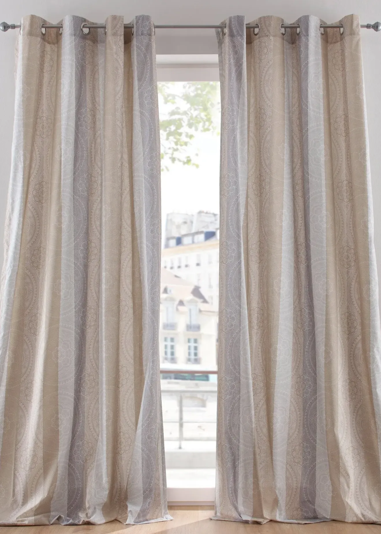 Besoin d’une nouvelle déco à vos fenêtres ? Ce rideau est imprimé d’un motif graphique sur le devant et composé d’un tissu mélangé opaque. Dos clair et sans imprimé.