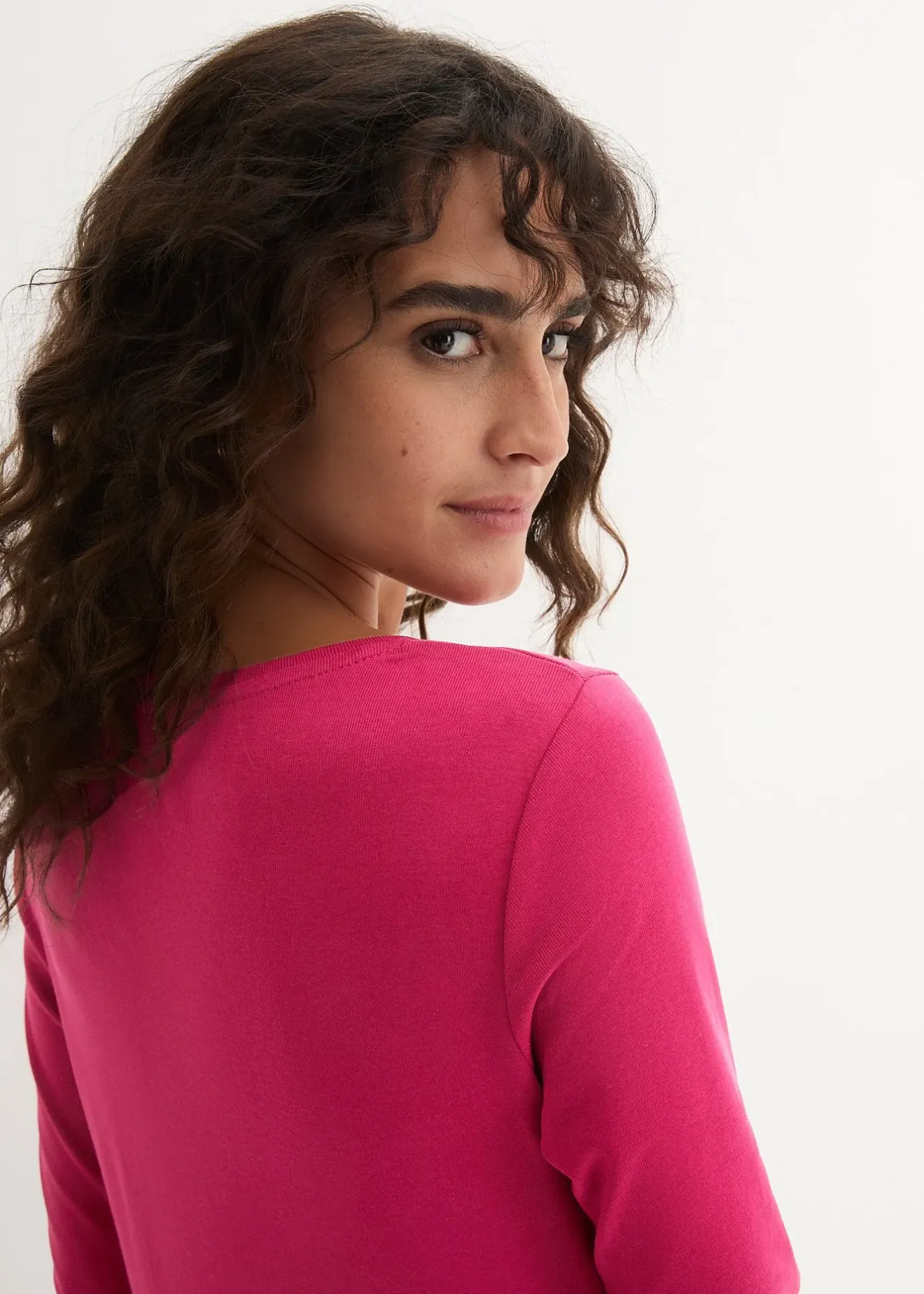 T-shirt simple de bpc à encolure ronde et manches longues, légèrement cintré.