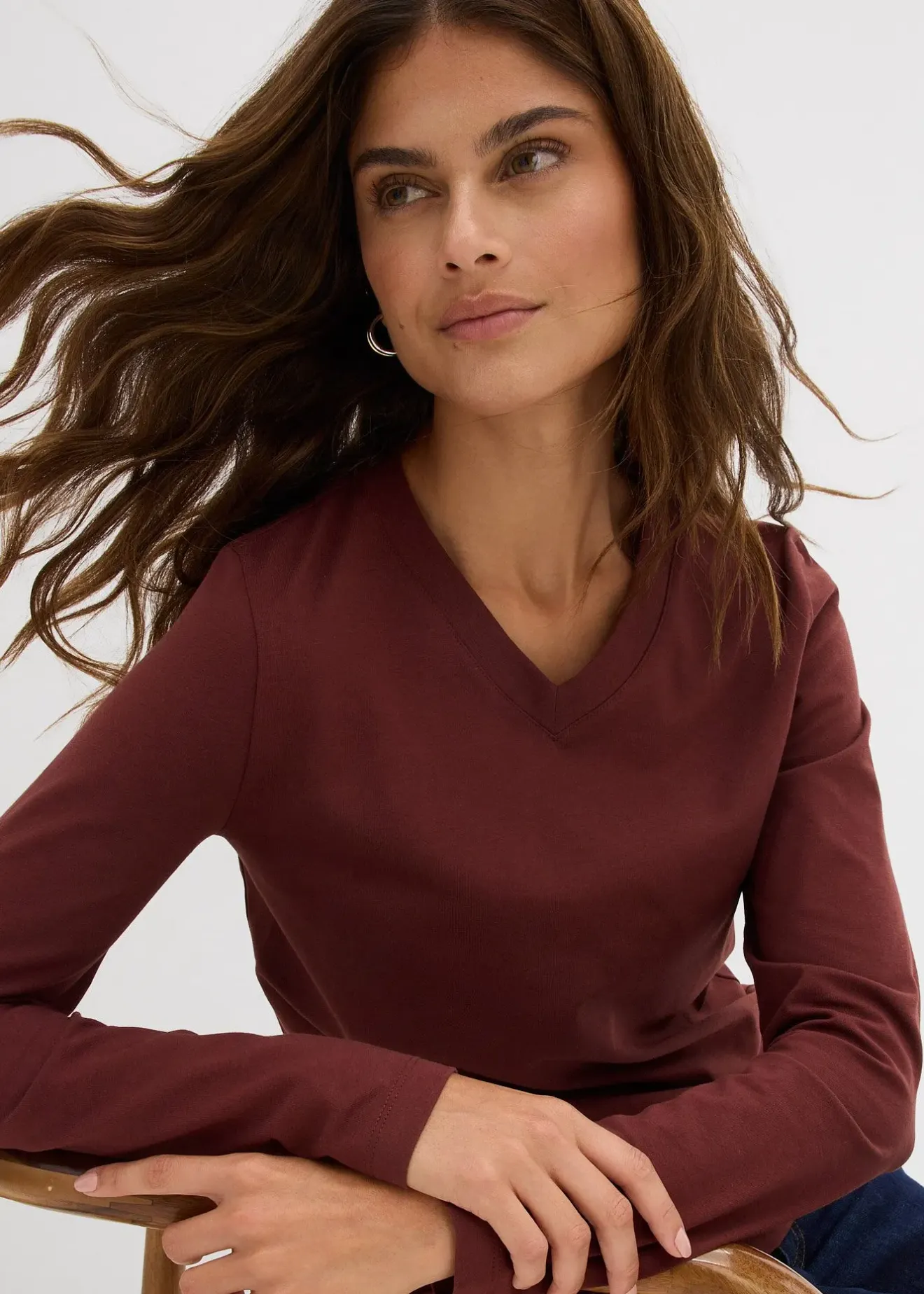 T-shirt manches longues confortable à col V
