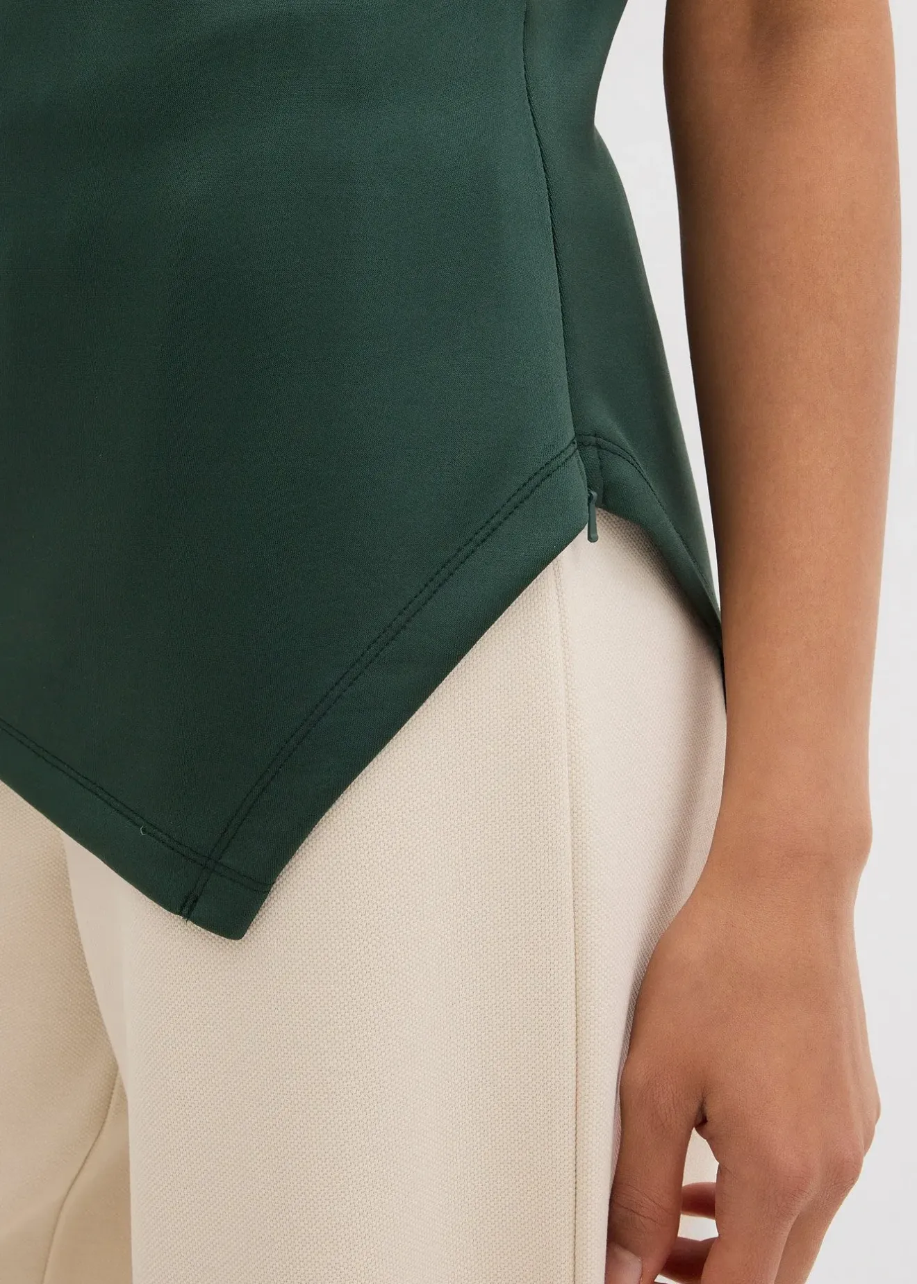 Top sans manches avec détail drapé sur le côté et base asymétrique.