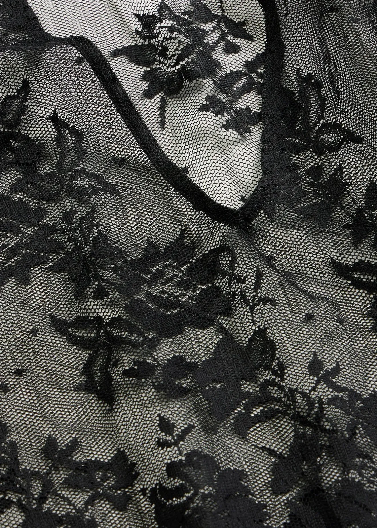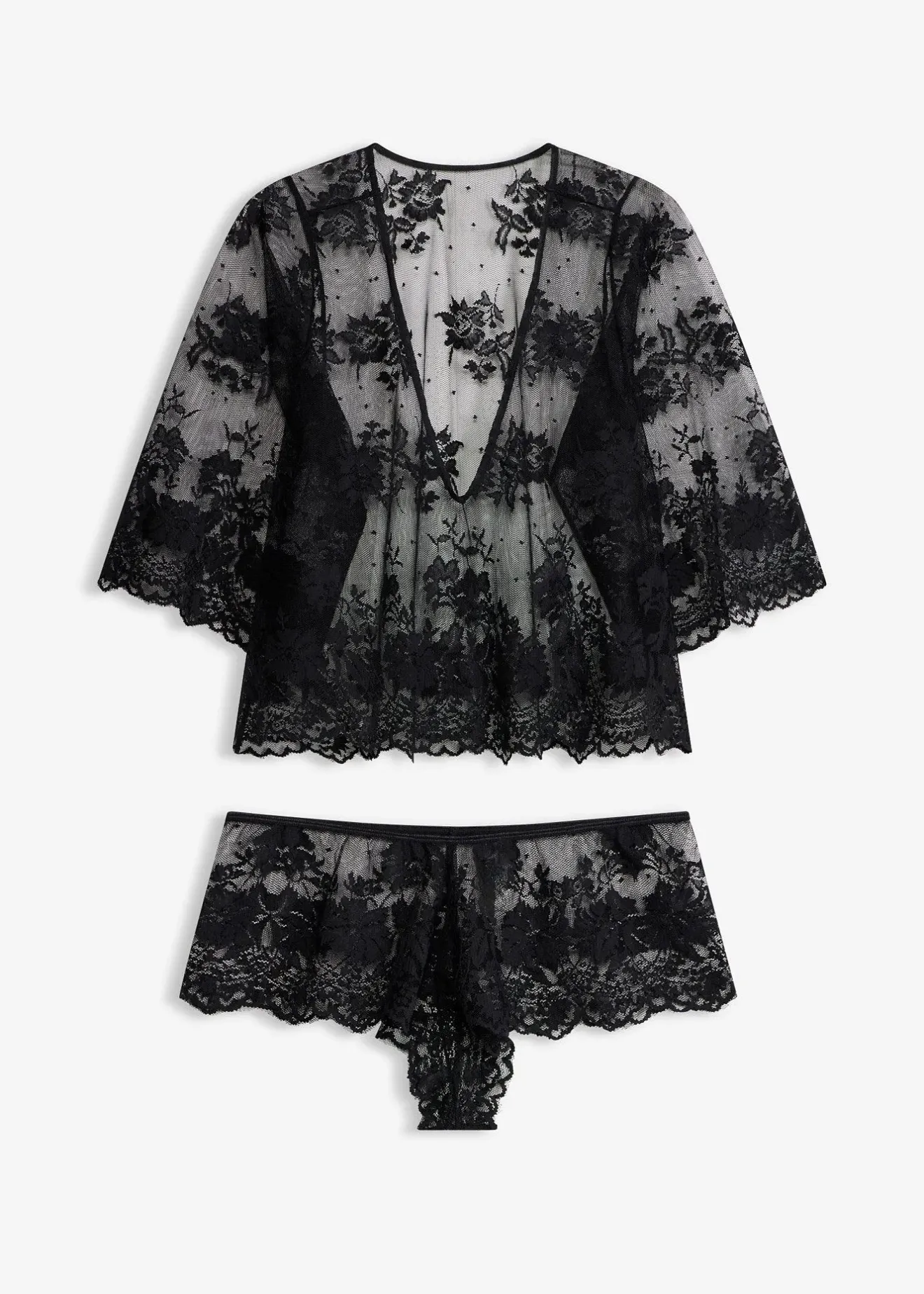 Cet ensemble érotique composé d’un top à manches longues et d’un shorty en dentelle transparente vous rend sublime. La dentelle élastique épouse agréablement la silhouette et le décolleté plongeant en V attire le regard. La dentelle très transparente dévoile vos courbes féminines avec sensualité tandis que le shorty près du corps souligne votre fessier avec élégance. L’ensemble est également proposé en grandes tailles.