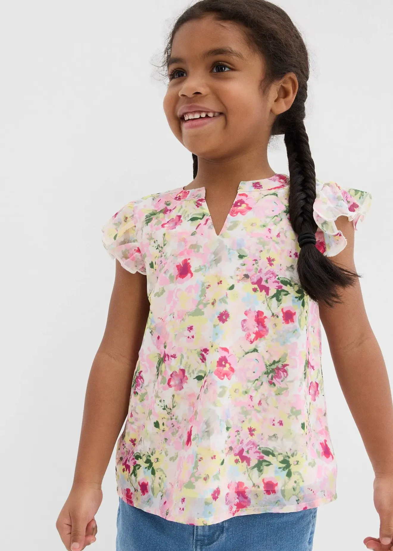 Tunique fantaisie pour fille avec col V et volants