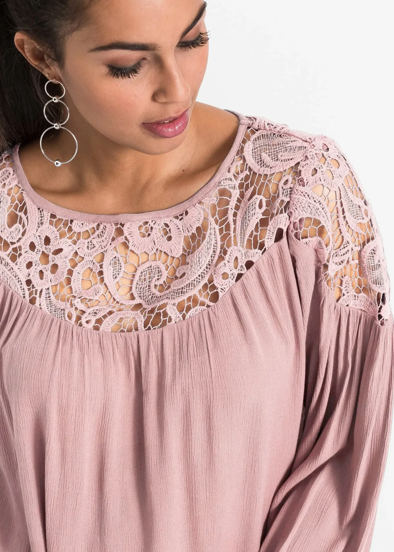 Tunique tendance de la marque BODYFLIRT. Partie supérieure en dentelle et lien décoratif au décolleté. Long. env. 62 cm.