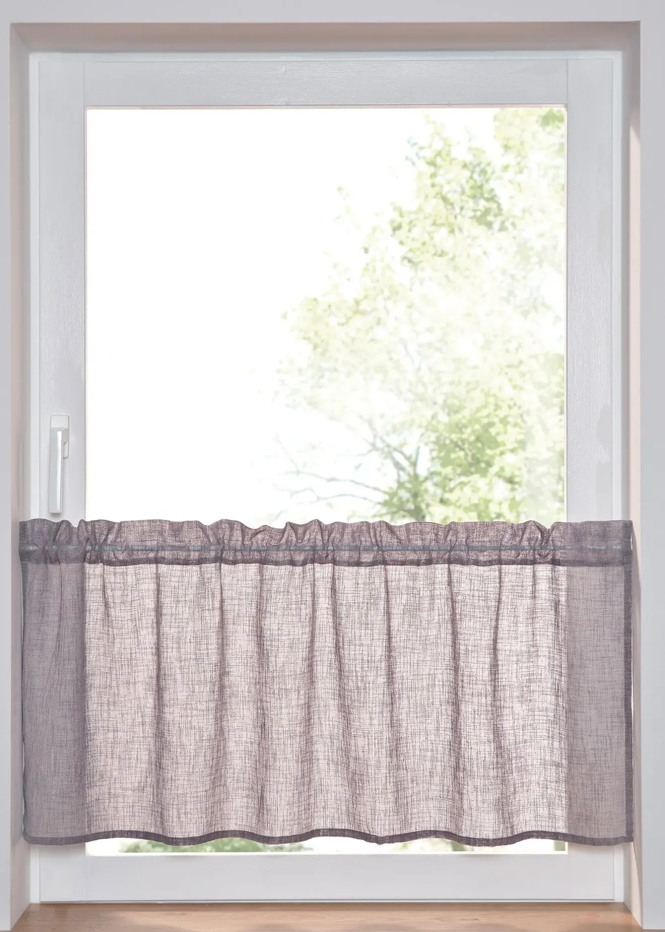 Brise-bise élégant effet lin. Coulisse passe-tringle pour diamètre max. 3 cm.