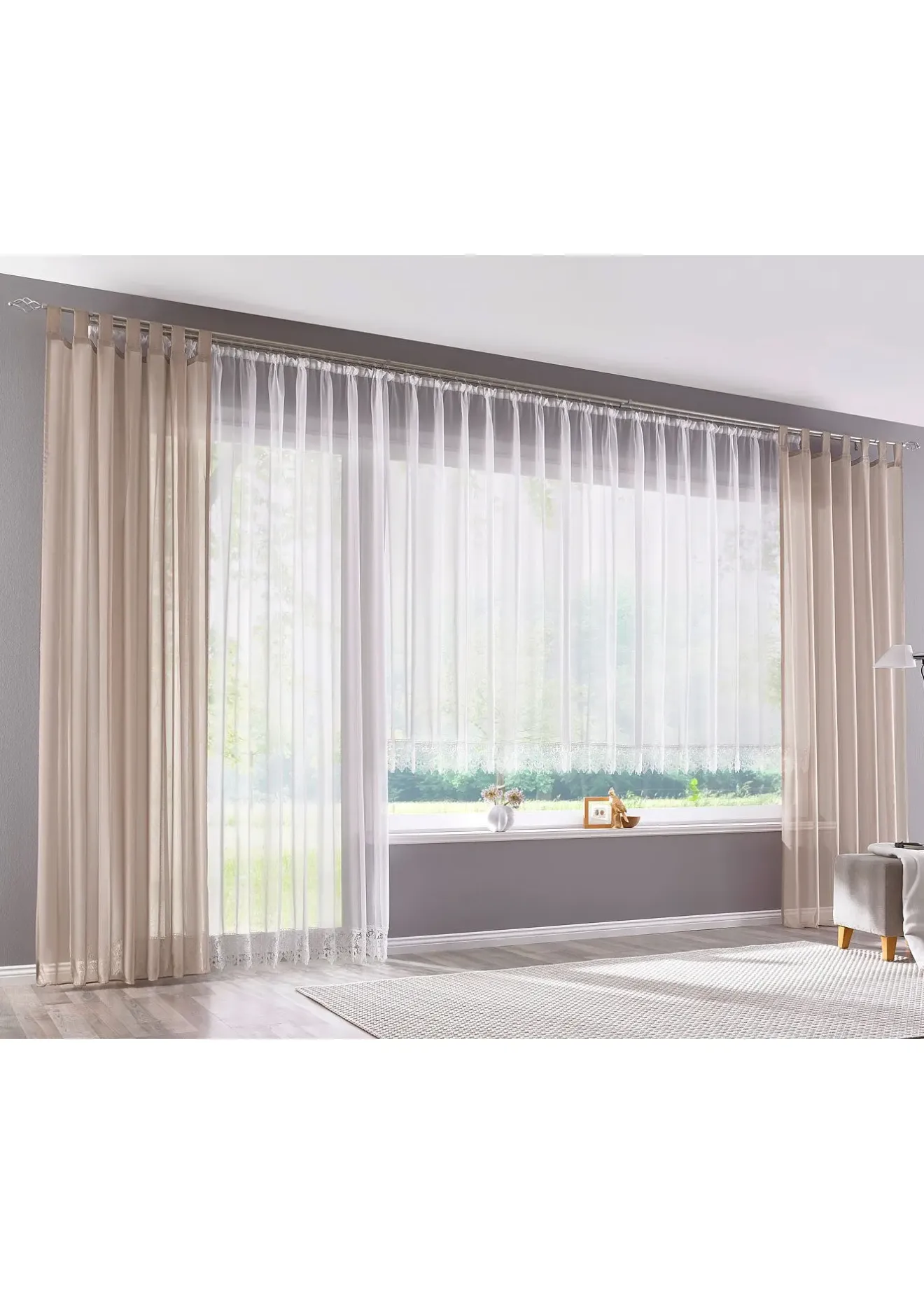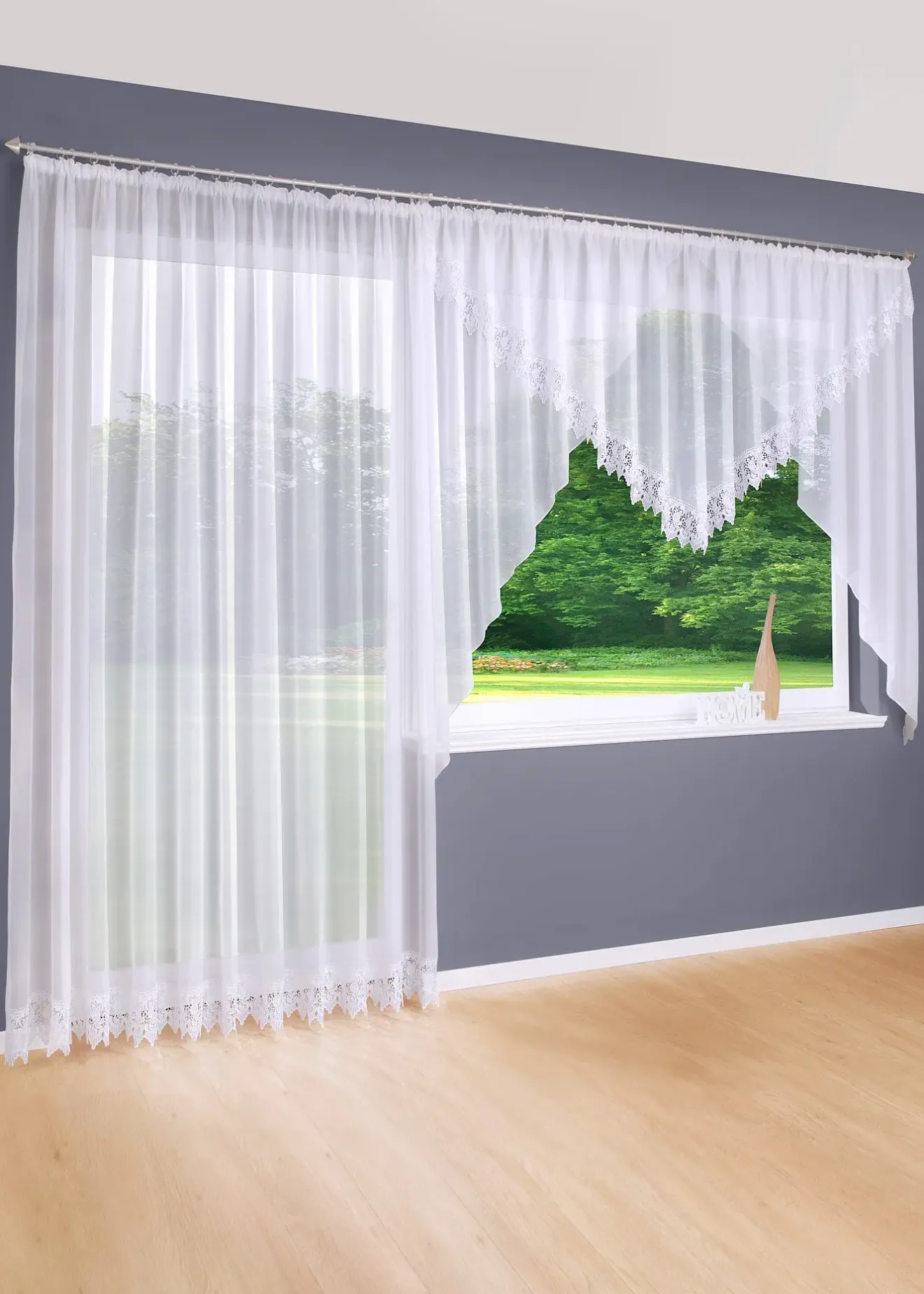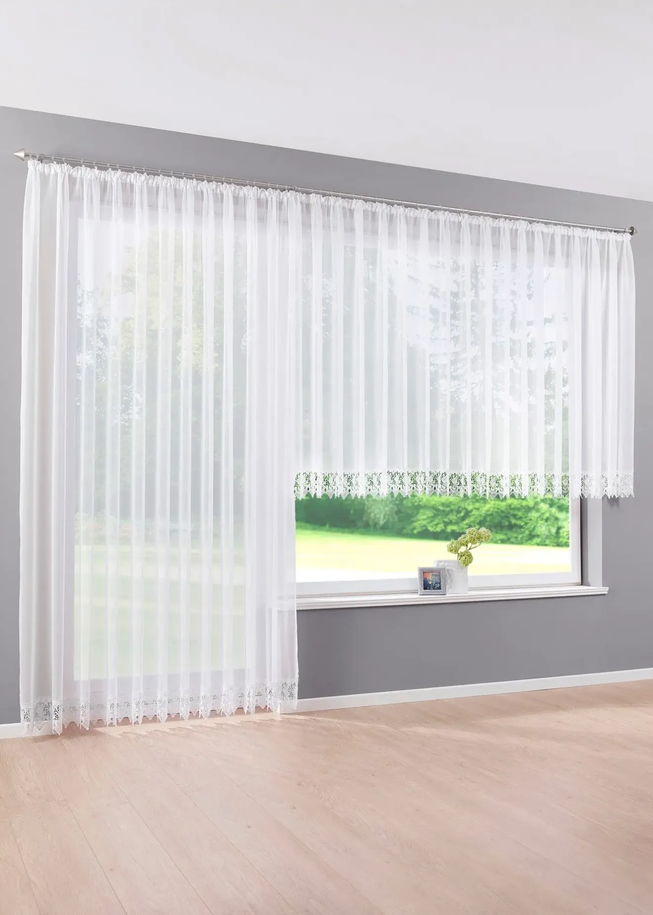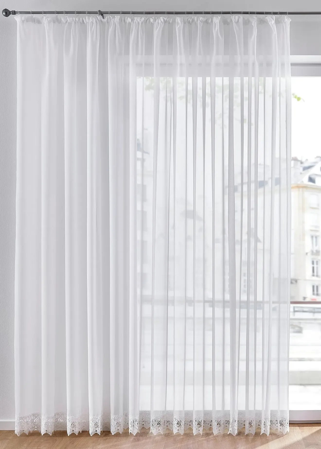 Voilage transparent à bordure crochet décorative