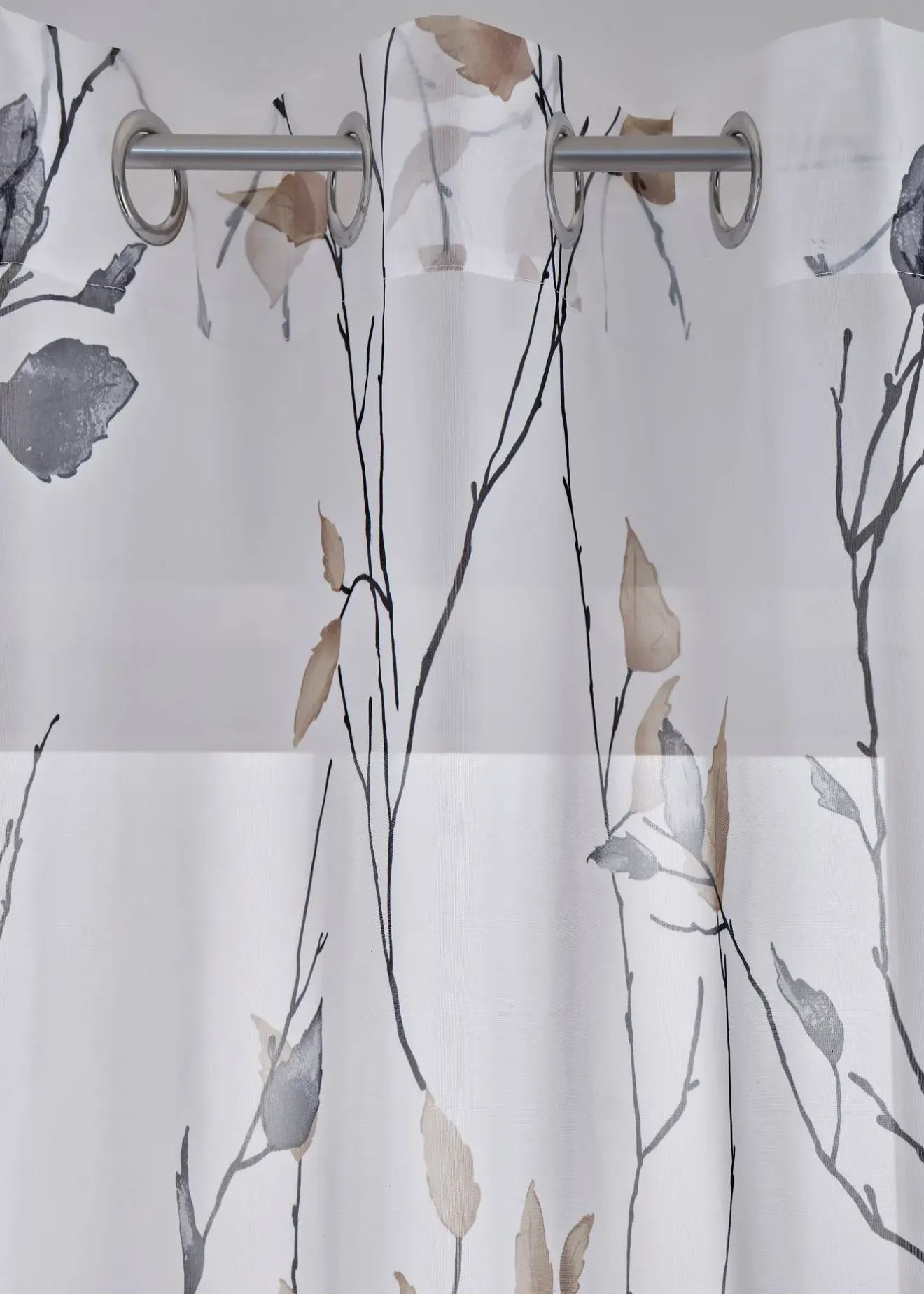 Imprimé floral façon aquarelle sur voile transparent. Les tonalités douces et la transparence de ce voilage apportent de la lumière et de la convivialité à votre pièce. Ce voilage est confectionné en tissu facile d’entretien.