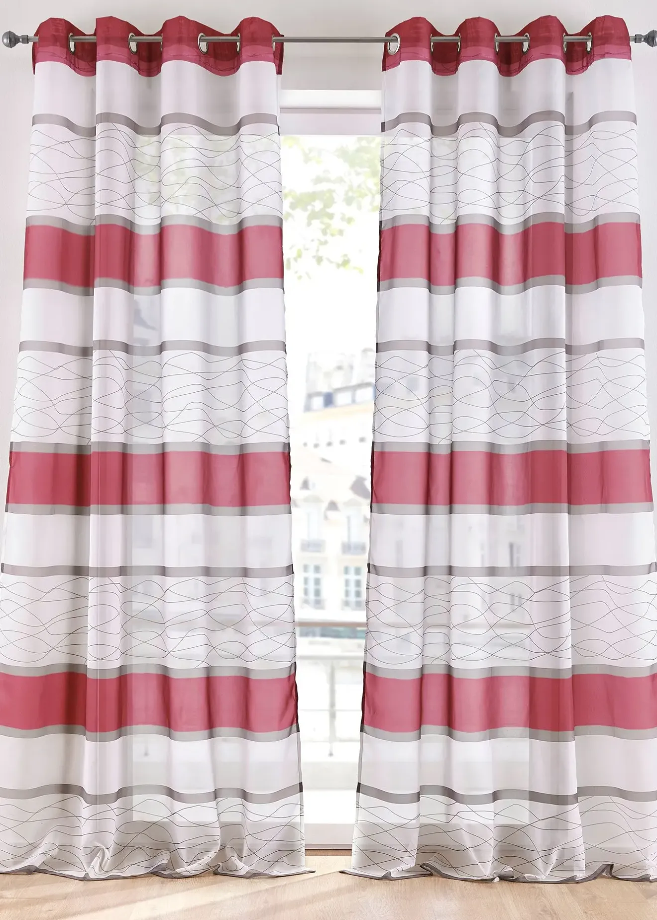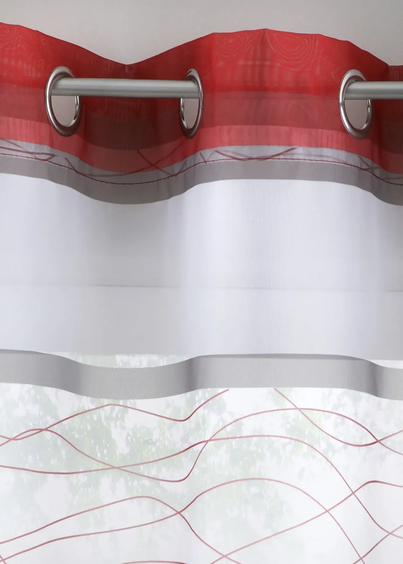 Changez facilement et rapidement de déco de fenêtre avec ce voilage transparent dans un tissu de haute qualité. Il séduit par ses jolies rayures horizontales imprimées et sa matière légèrement transparente. Divers coloris harmonieux.