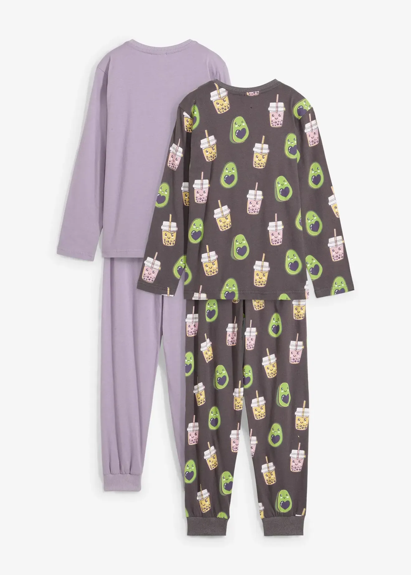 Lot de 2 pyjamas confortables en coton avec imprimé Bubble Tea et Avocado