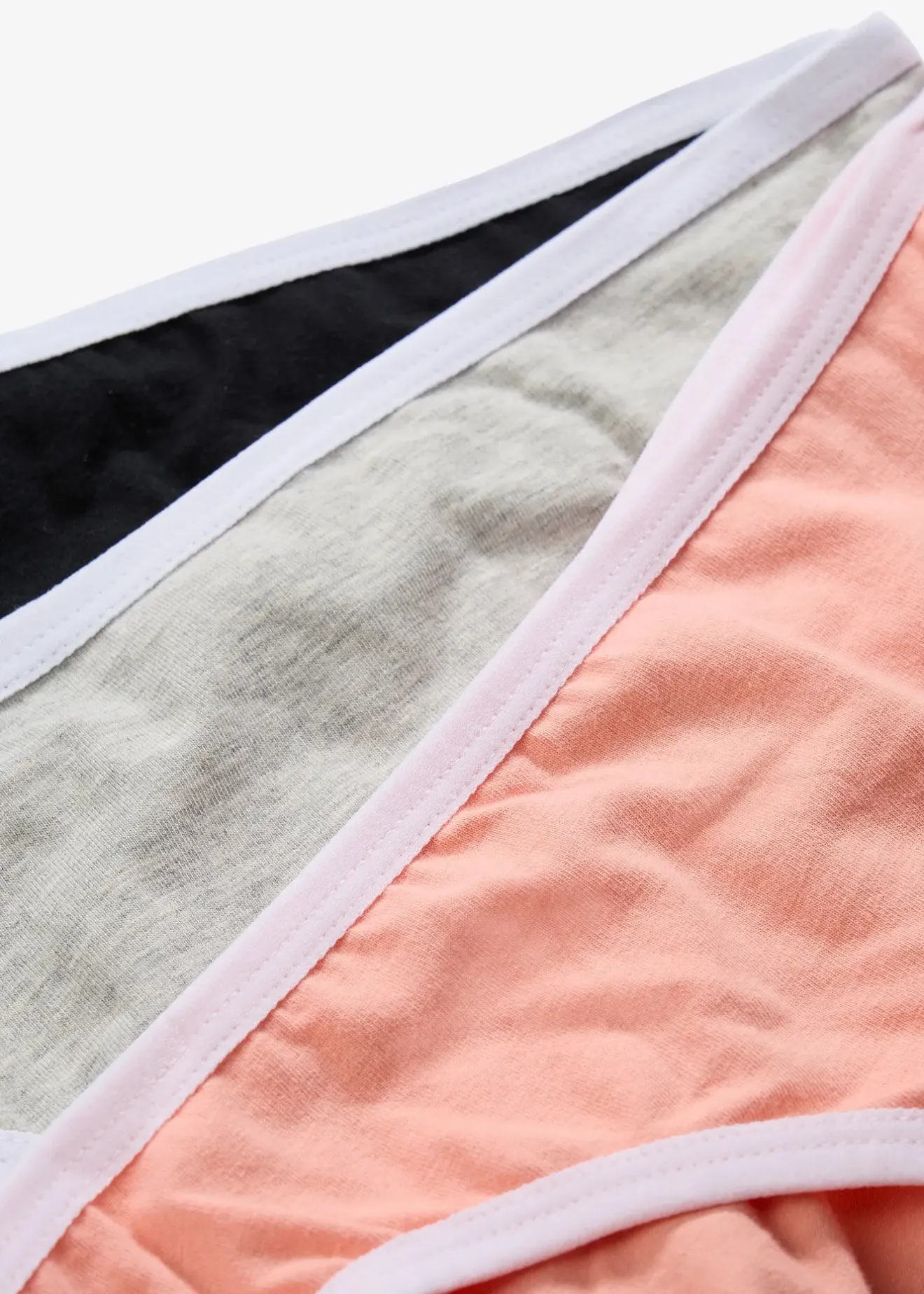 Slip fille tendance en coton extensible avec passepoil contrastant, par lot de 7