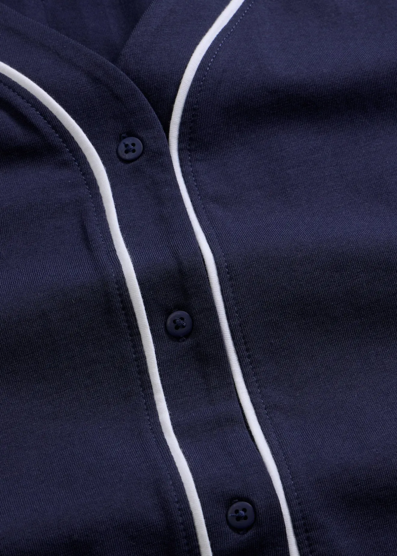 Chemise de nuit courte et boutonnée avec col en V et passepoils blancs