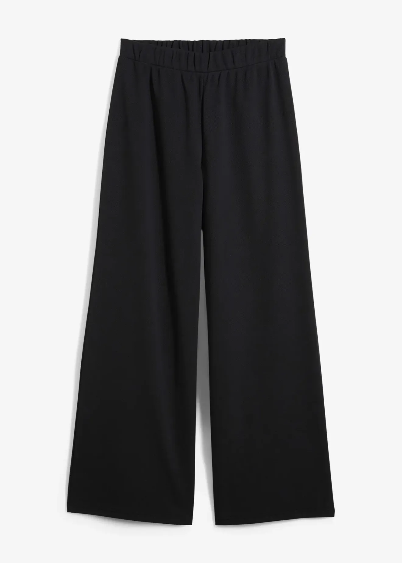 Pantalon large avec taille haute élastiquée et poches sur les côtés.