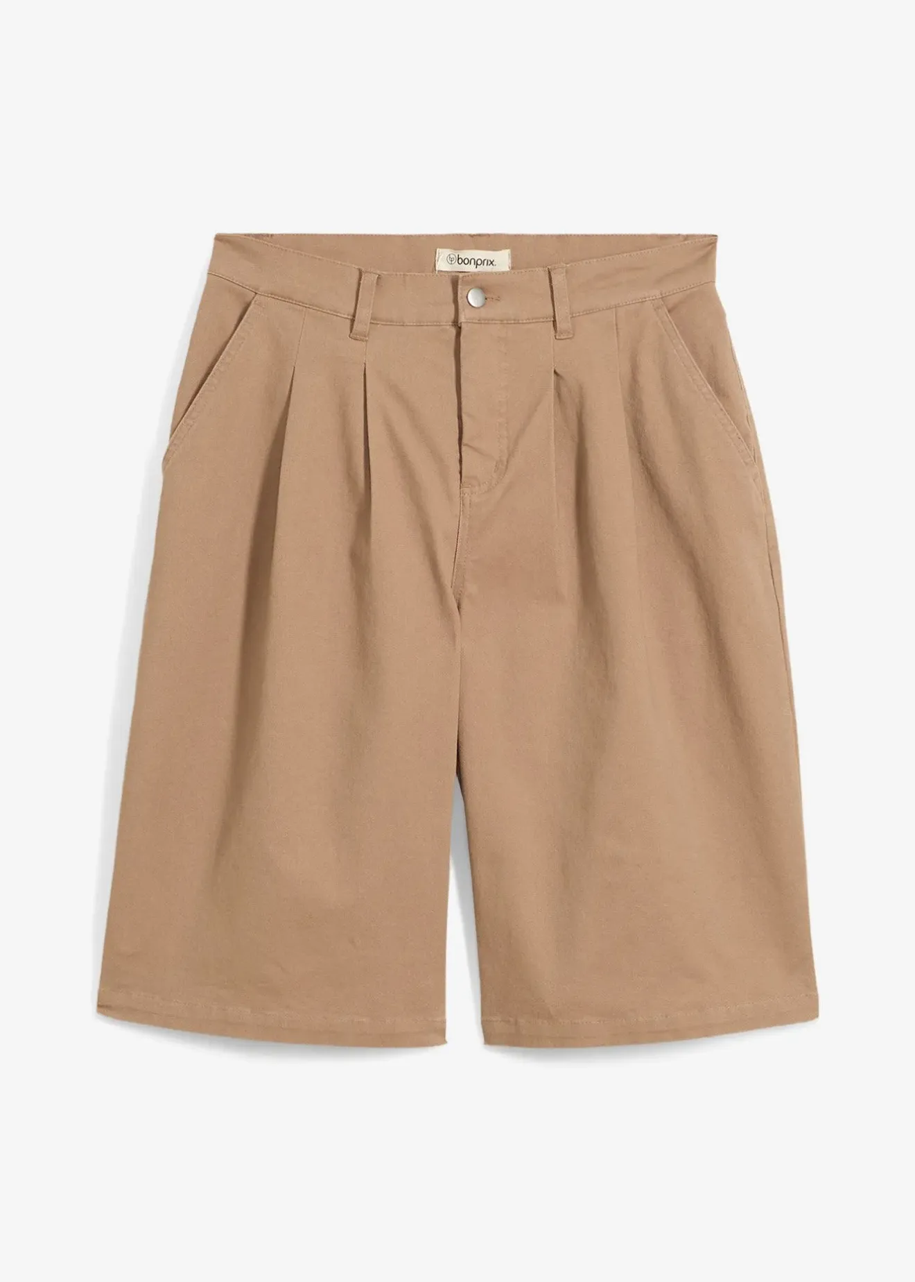 Bermuda long et stylé en toile de coton extensible, poches sur les côtés