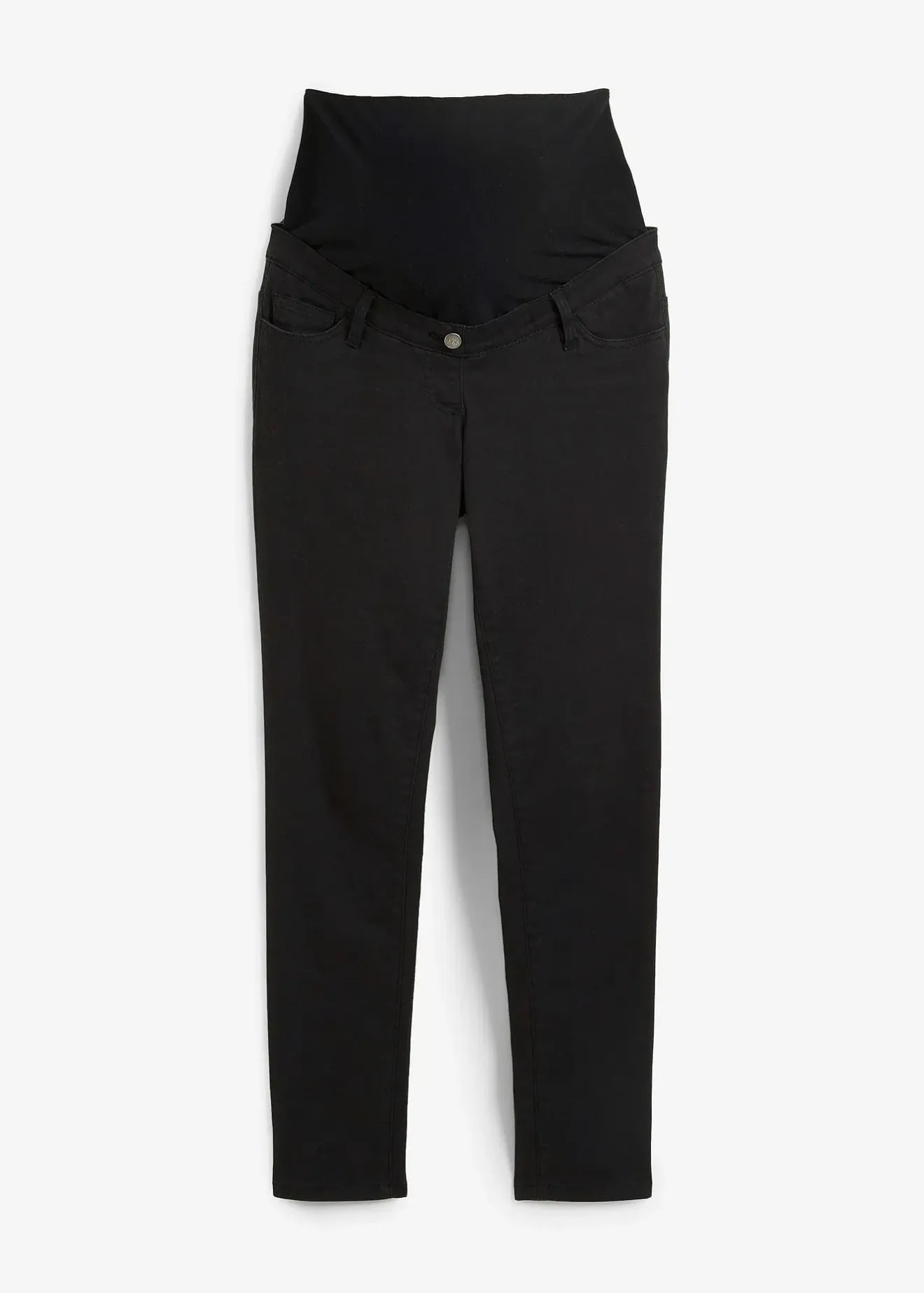 Jean 5 poches en denim coton extensible pour plus de confort. Coupe confortable avec jambes légèrement étroites. Large bandeau monté en jersey coton pour un ajustement optimal sur le ventre. Taille avec élastique réglable pour ajuster l’ampleur au fil de la grossesse.