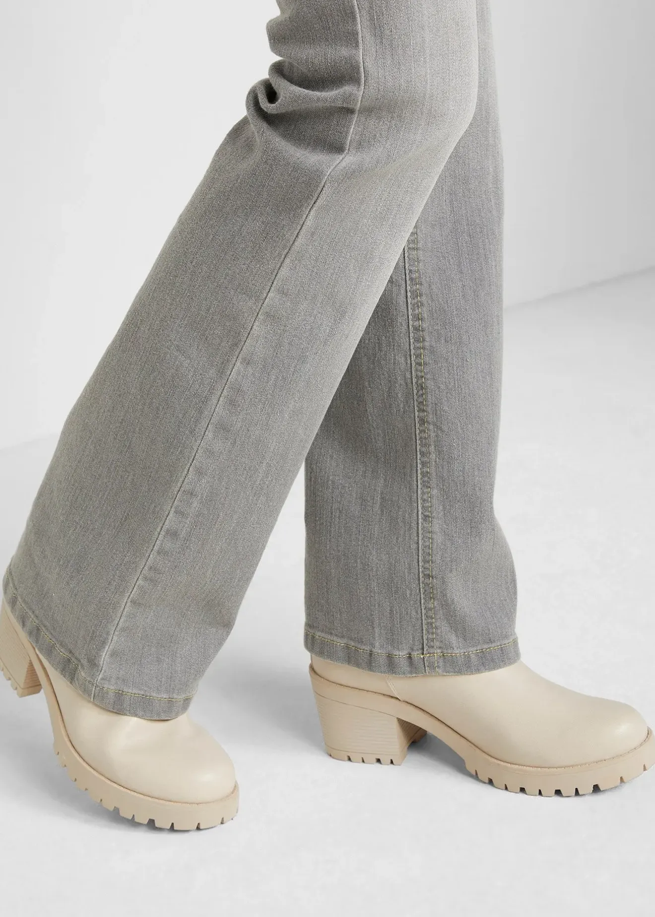 Jean bootcut extensible de John Baner en toile légèrement usée, avec une hauteur de taille normale et des jambes légèrement évasées. Style 5 poches classique avec braguette zippée avec un bouton. Un modèle facile à combiner avec de nombreuses chaussures.