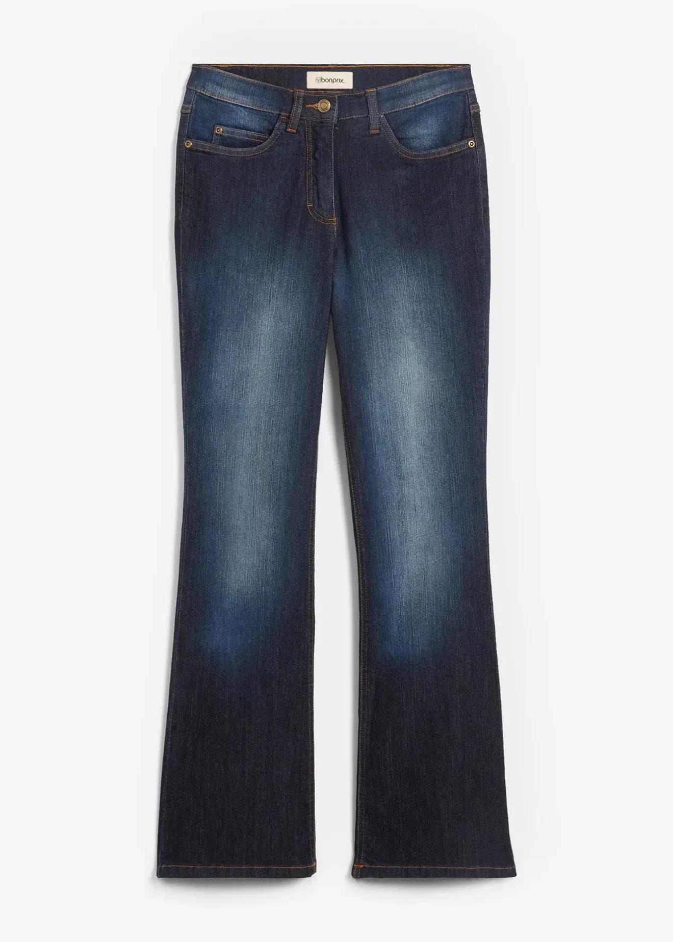 Jean extensible, Bootcut, style 5 poches, taille de hauteur confortable, cuisses normales, jambes évasées, différentes longueurs d’entrejambe, lavage machine.