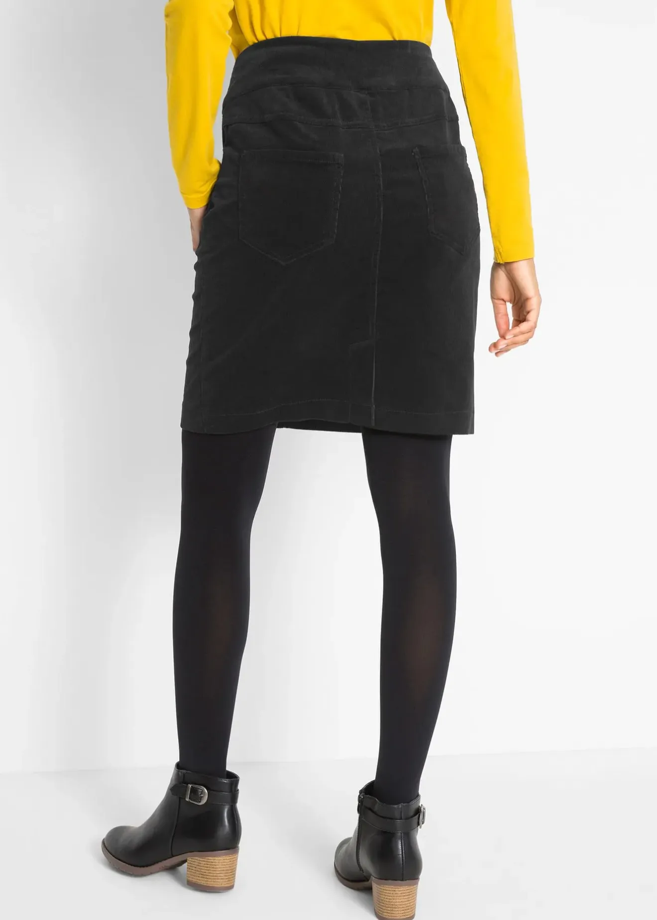 Jupe longueur genou en velours côtelé extensible à ceinture élastiquée