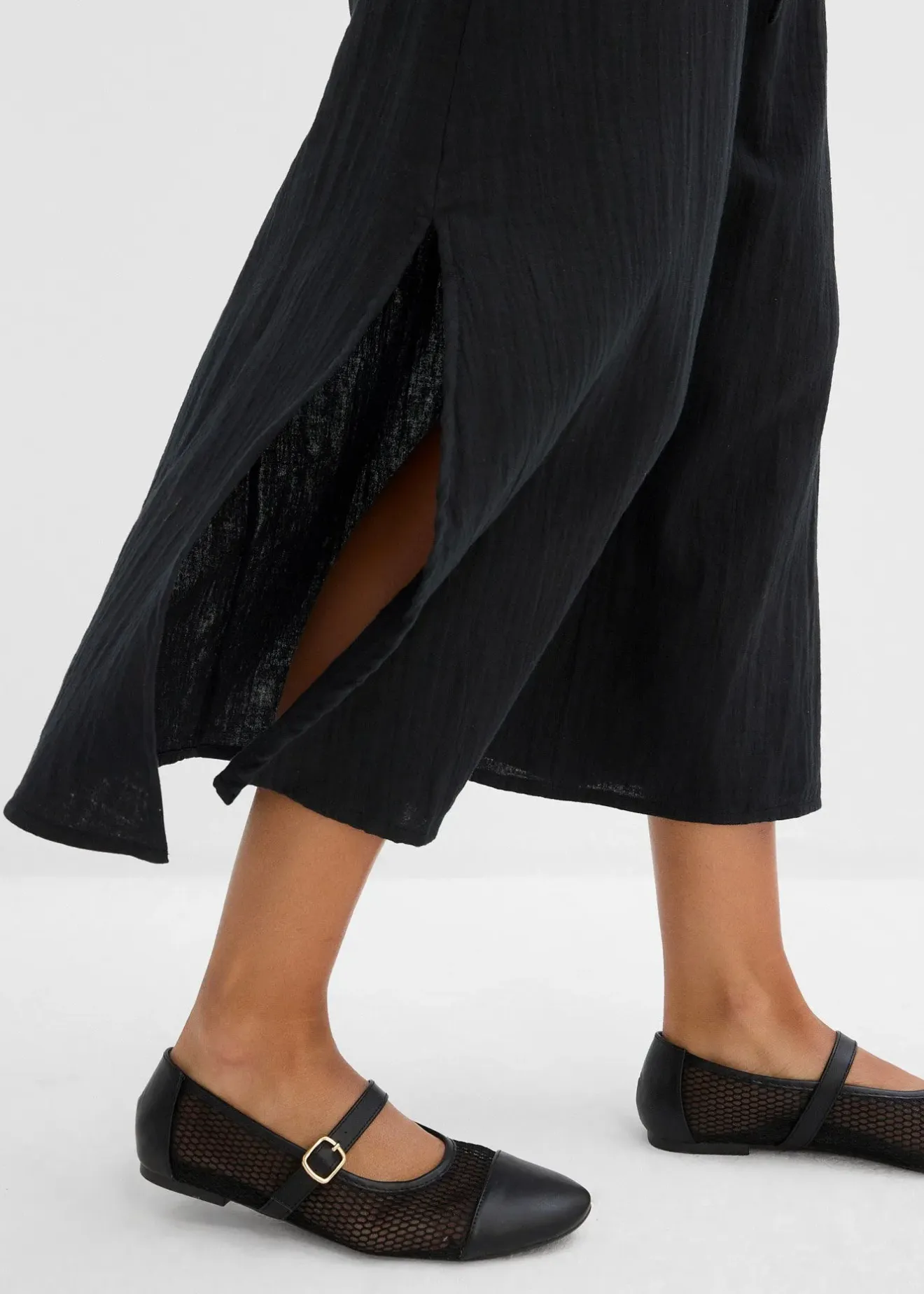 Jupe longue en coton doux, avec taille élastiquée et fente sur le côté