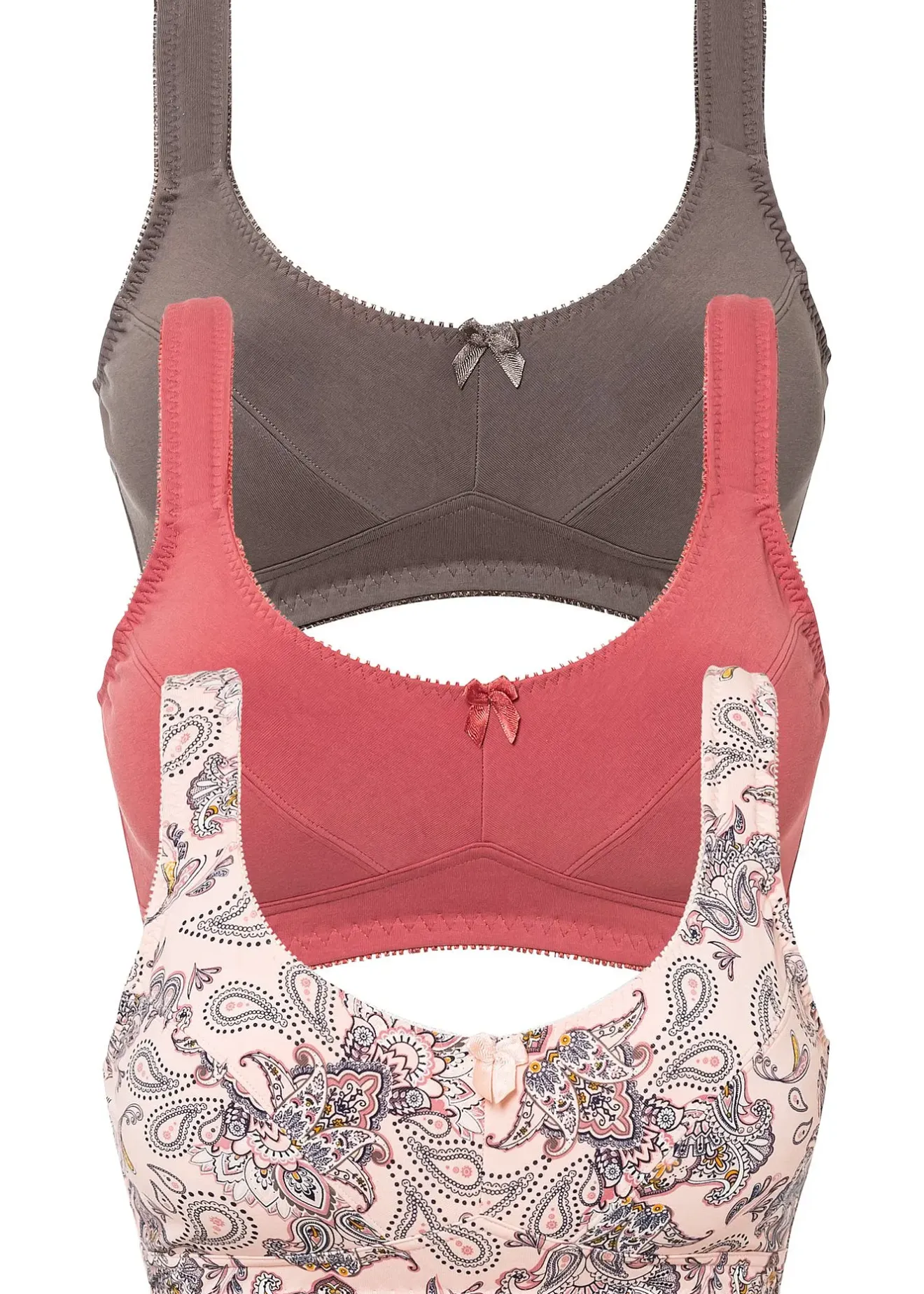 Lot de 3 soutiens-gorge sans armatures avec imprimé paisley féminin et larges bretelles rembourrées.
