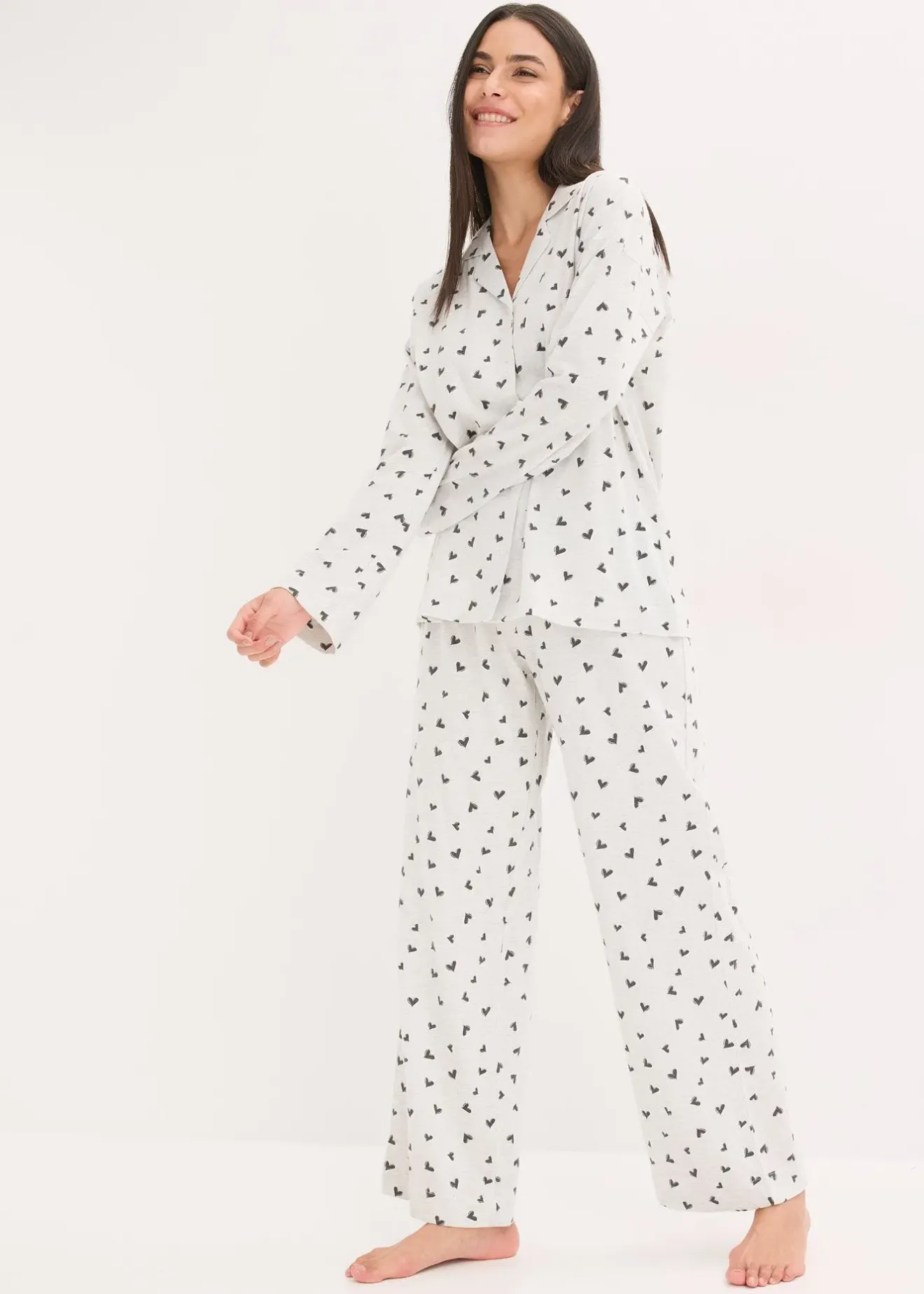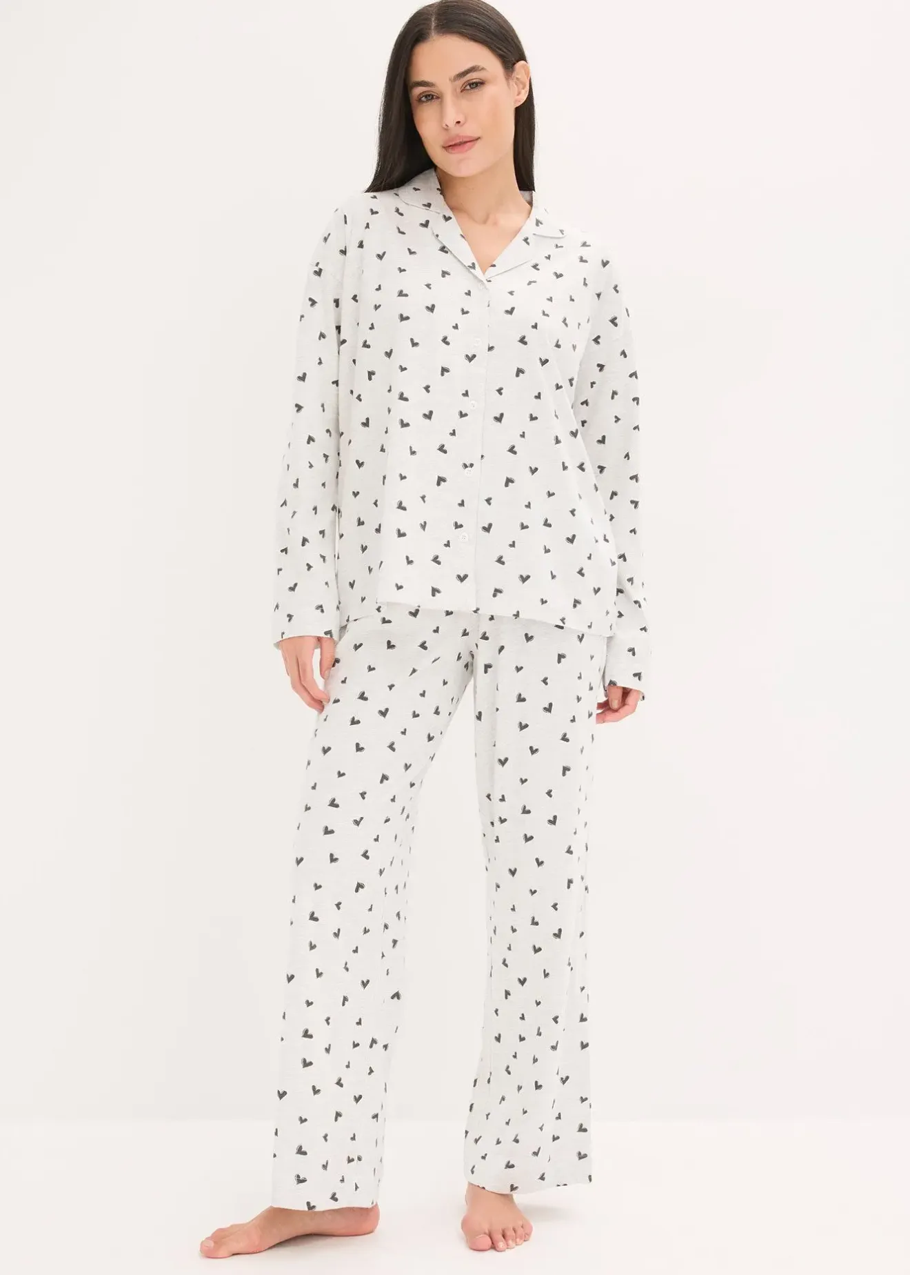 Pyjama oversize à imprimé cœur et manches longues