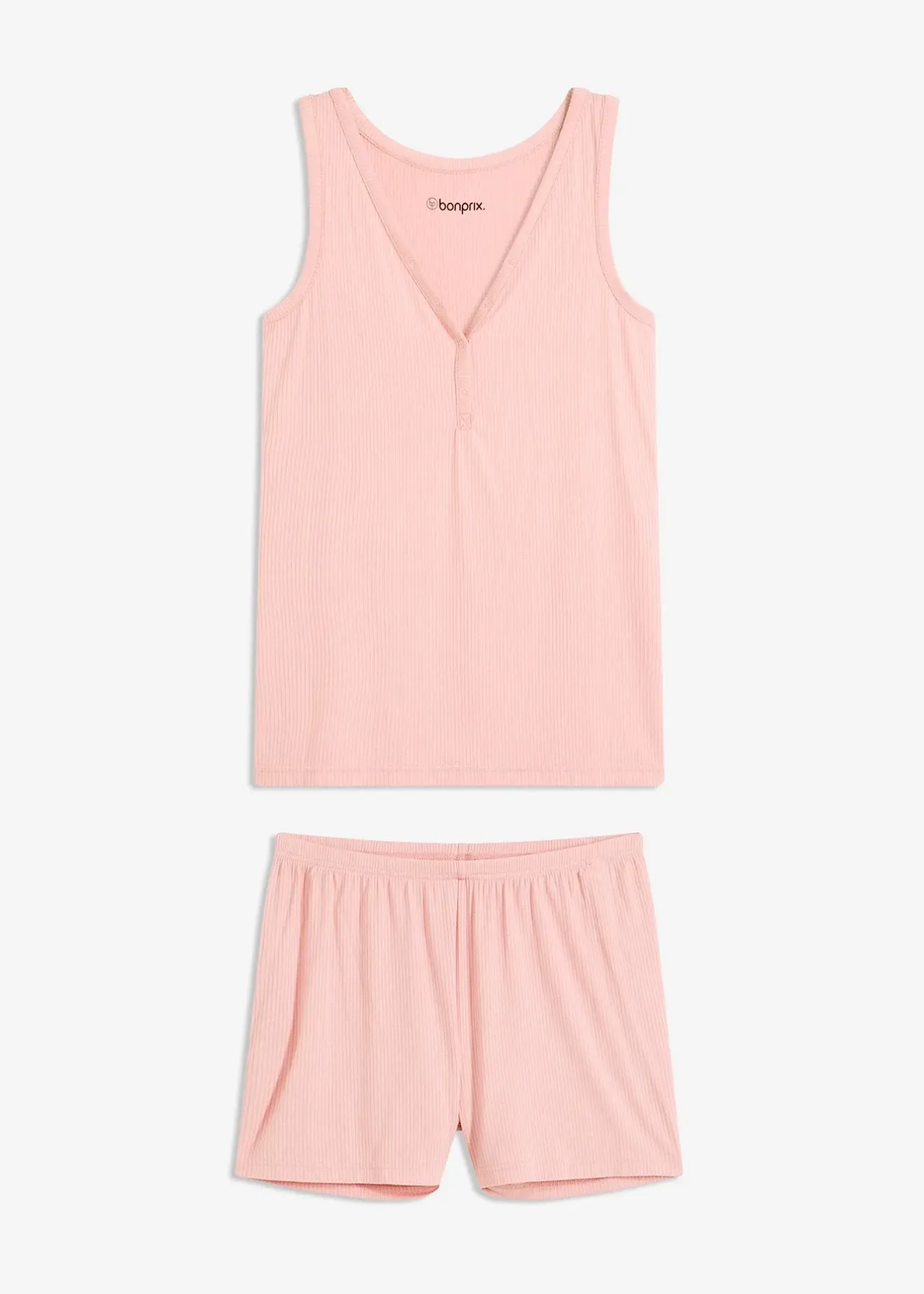 Pyjashort fluide et confortable en matière douce et côtelée, avec encolure V profonde