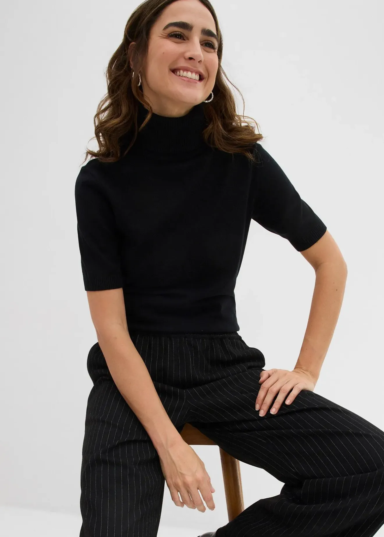 Près du corps, avec col roulé et manches courtes, long. d’env. 60 cm à 74 cm, lavage machine.