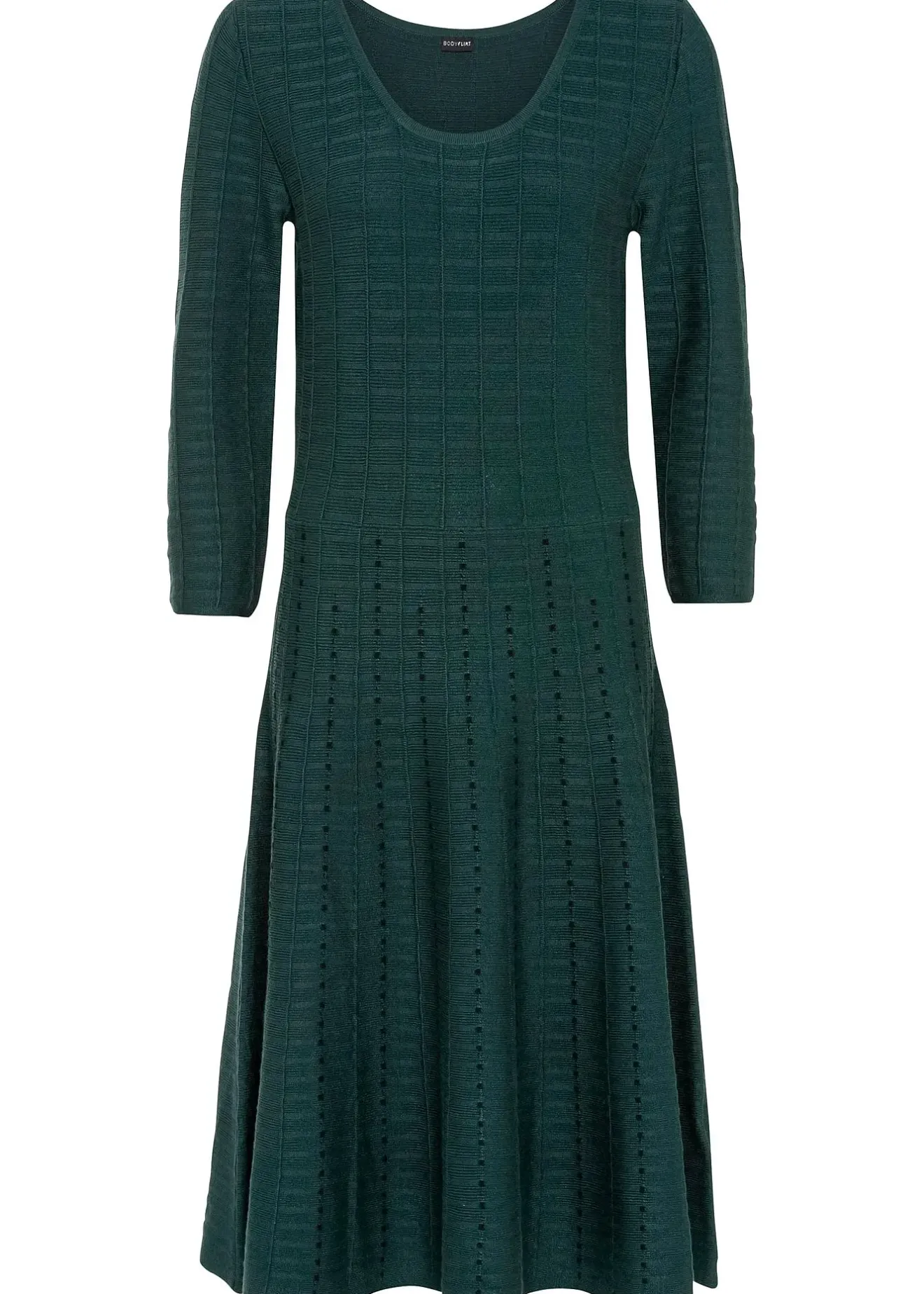 Cette robe en maille de la marque Bodyflirt est agrémentée d’un effet rayé sur la partie jupe dansante. Encolure ronde et manches 3/4. Long. env. 94 cm.