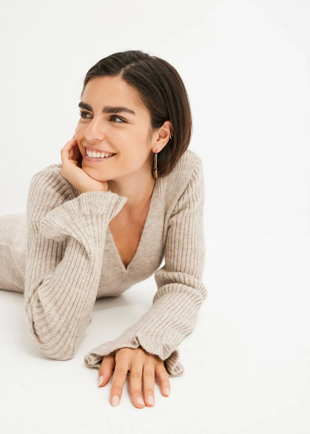 Robe pull féminine avec poignets volantés