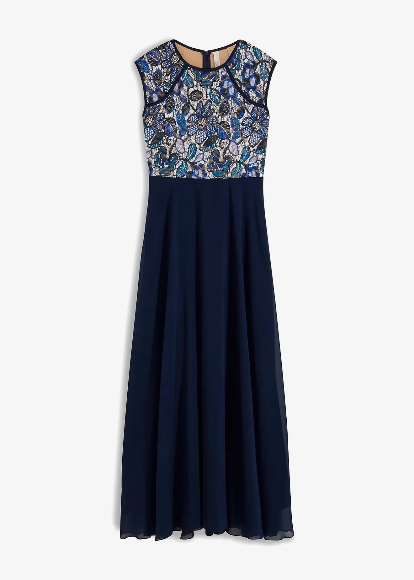 Robe de soirée élégante à dentelle multicolore sur le haut et passepoil contrastant