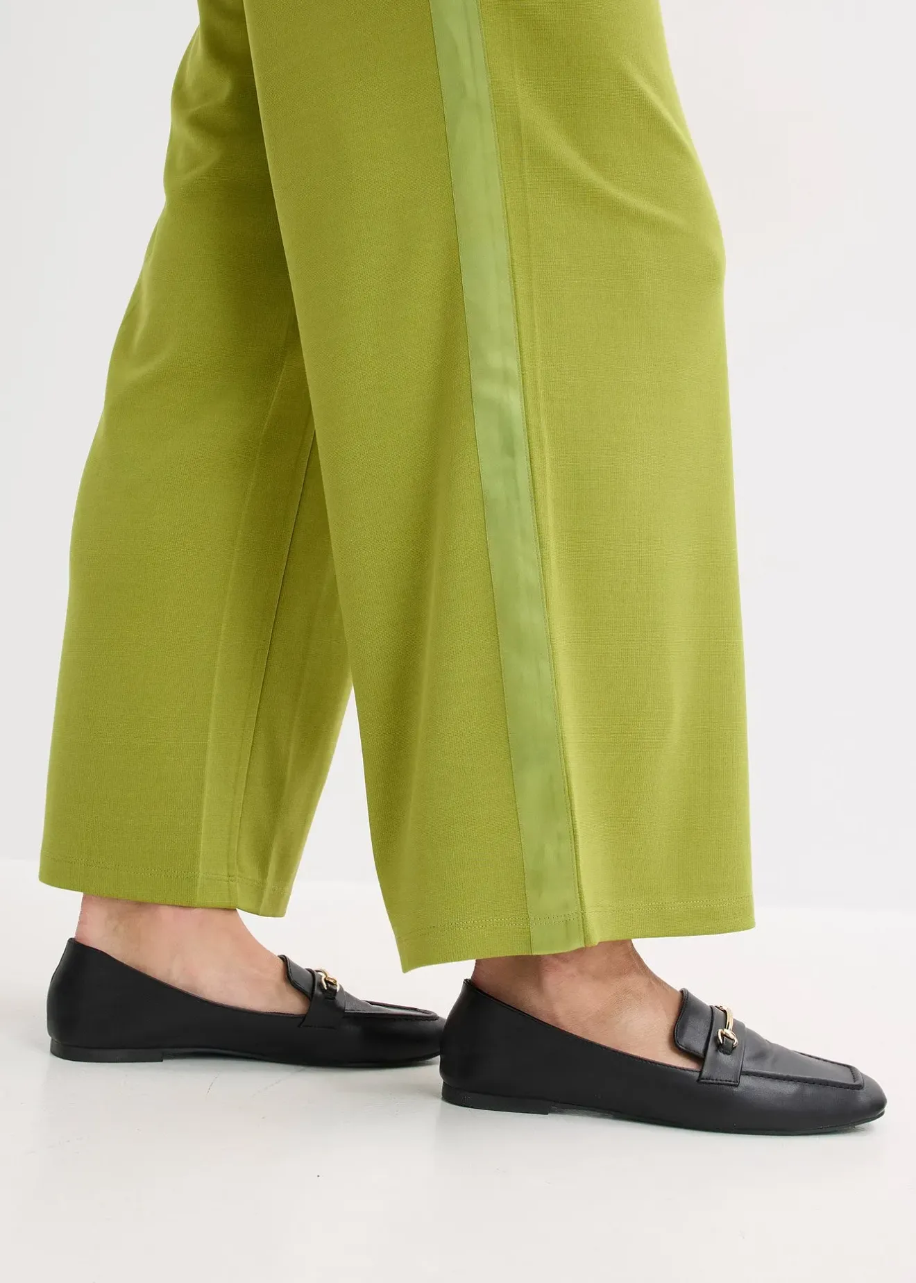 Pantalon large et élégant à pinces en Punto di Roma avec ruban de satin