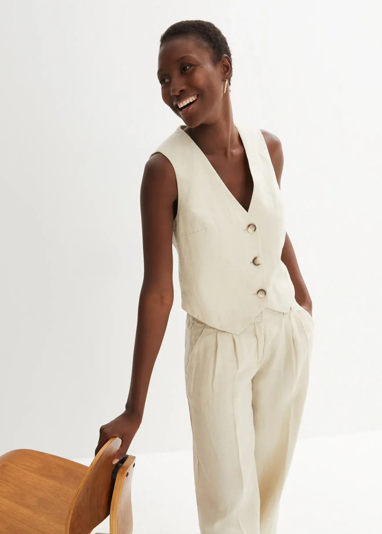 Gilet sans manches premium en lin avec doublure en coton agréable